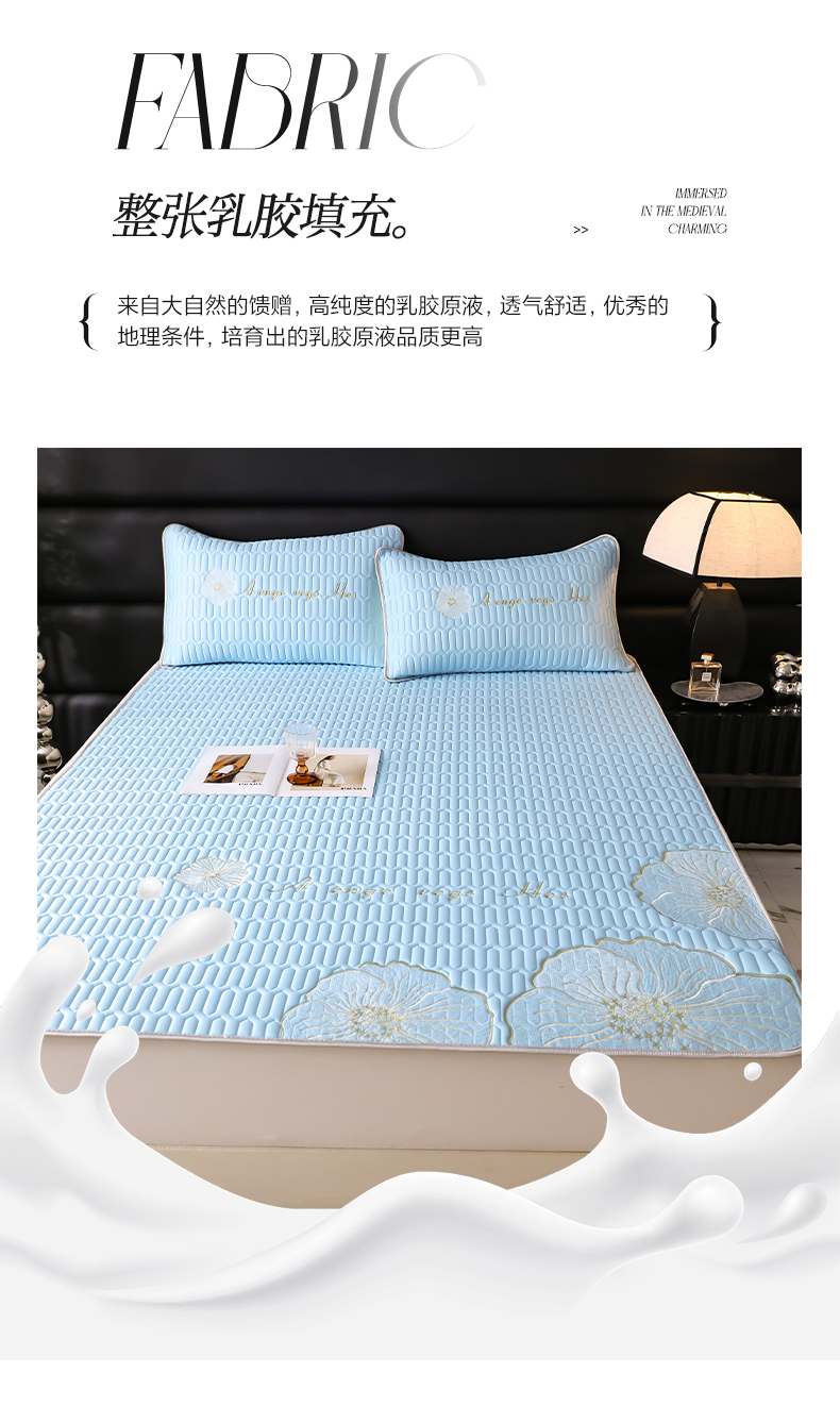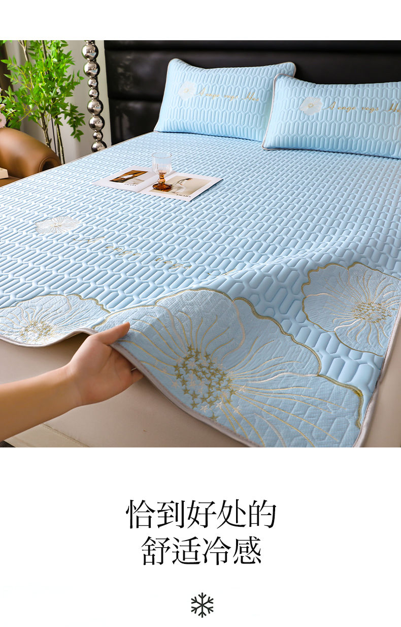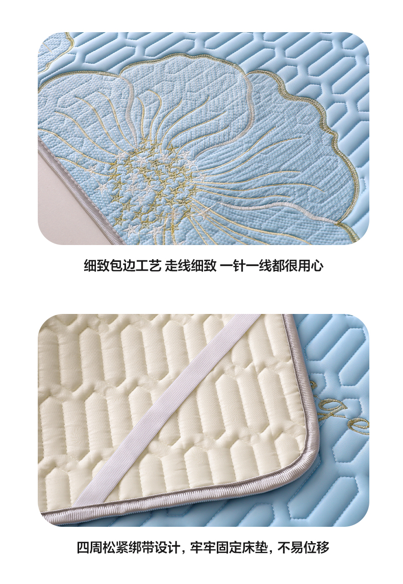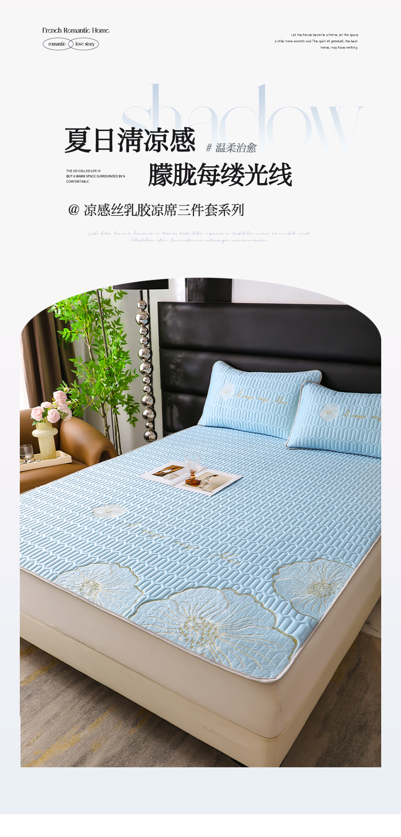 你好美丽 2025新款凉感丝绣花0.6乳胶凉席三件套-盛世年华 天蓝