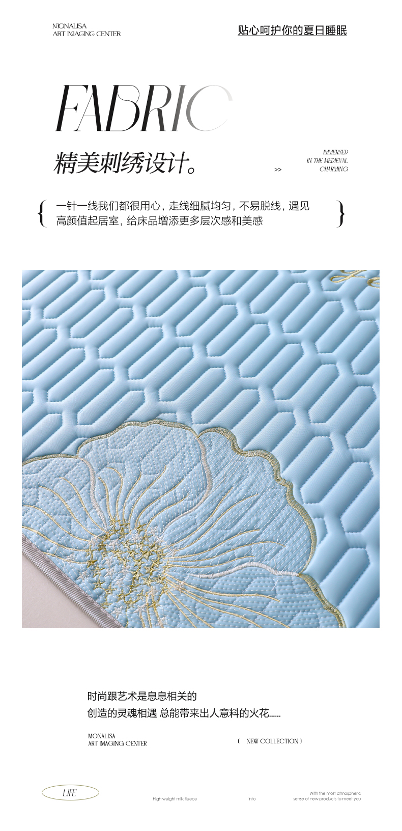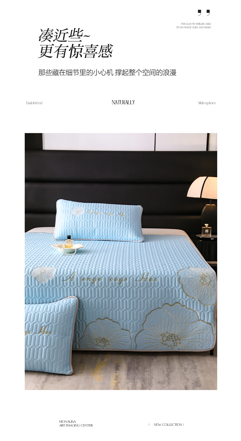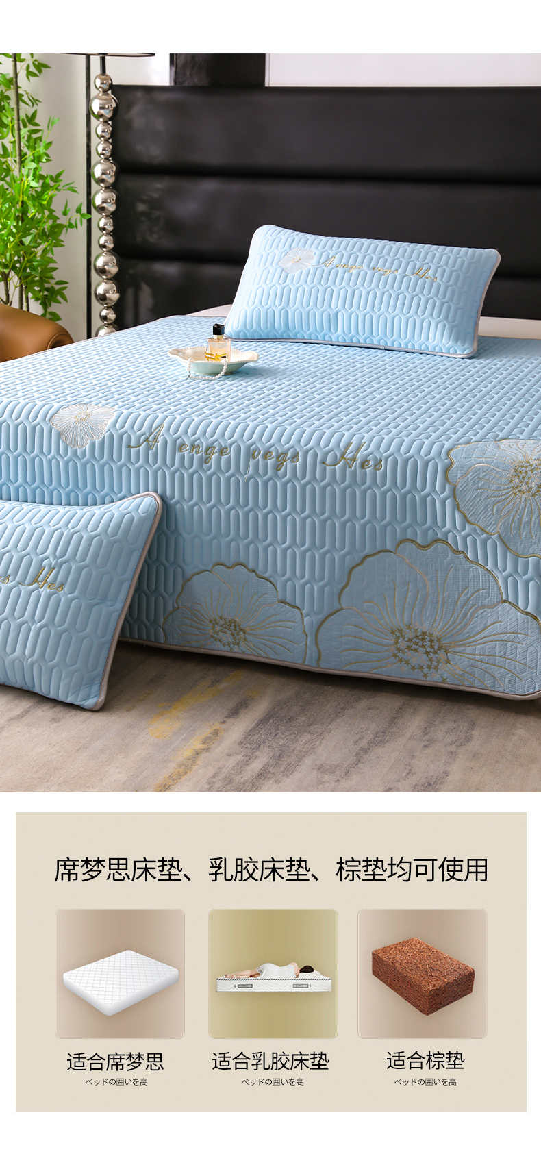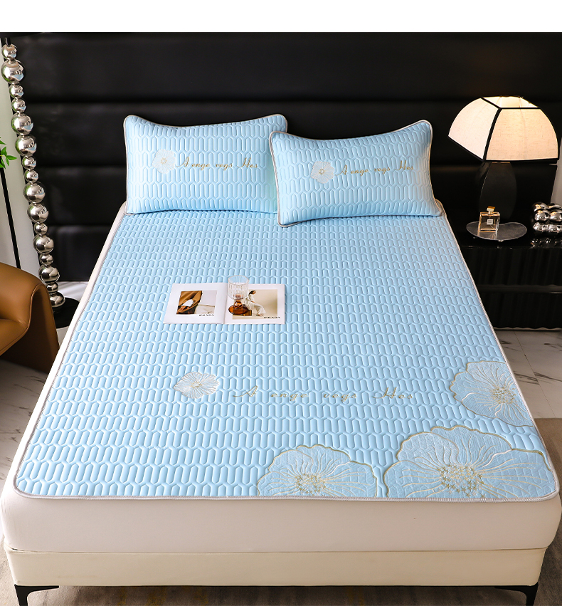 你好美丽 2025新款凉感丝绣花0.6乳胶凉席三件套-盛世年华 天蓝