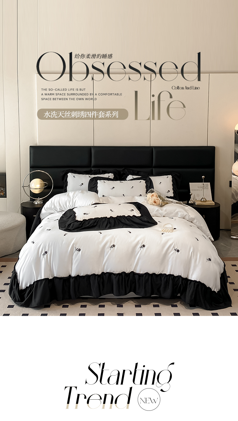 (总)绒掌柜家纺(品质焕新) 2026新款水洗真丝天丝冰丝刺绣四件套-典雅系列,宾利蓝,高级灰,墨绿,奶白,浅灰,少女粉,香槟,珍珠白