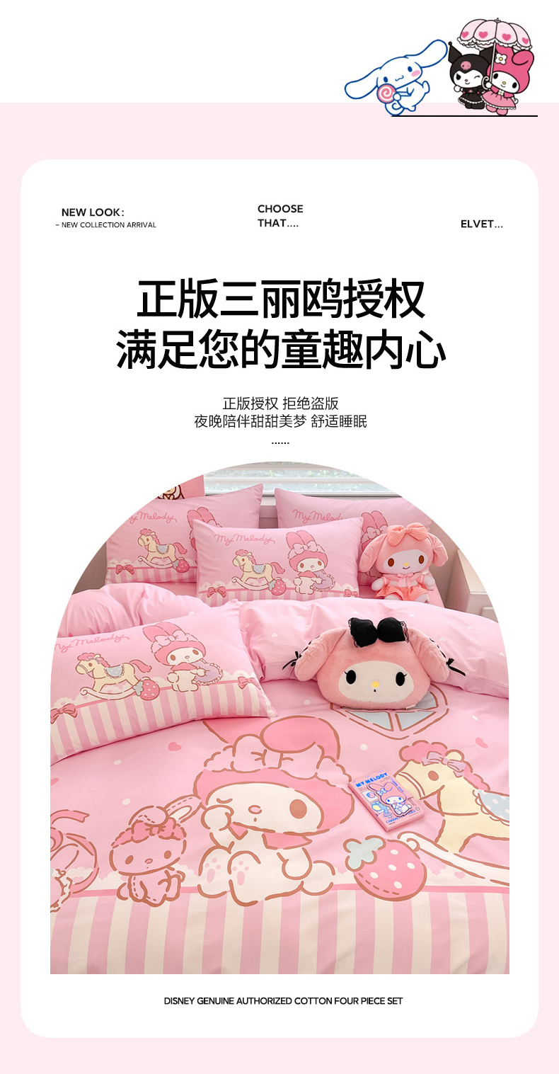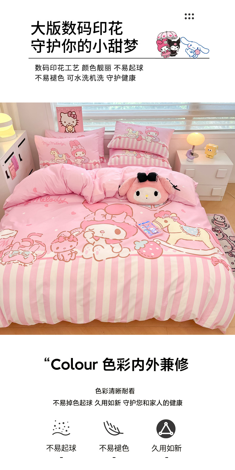 当前位置: 91家纺网 > 商品网购 > 床品套件 > 四件套 > 全棉普通四件套 > 暮思家居 2025新款正版授权三丽鸥大阪全棉数码印花纯棉四件套系列-第三批(专版花型) 大版-条纹美乐蒂