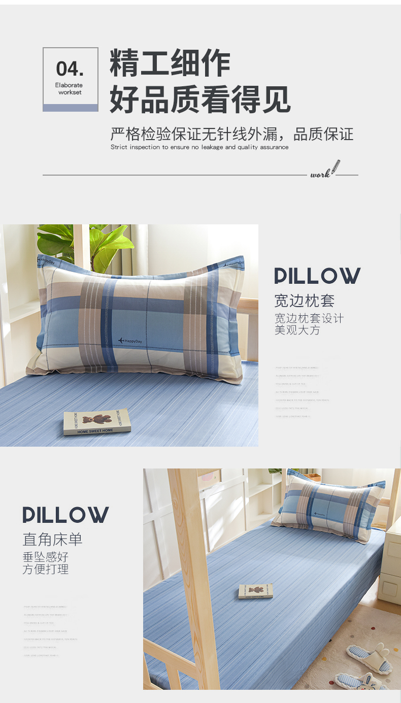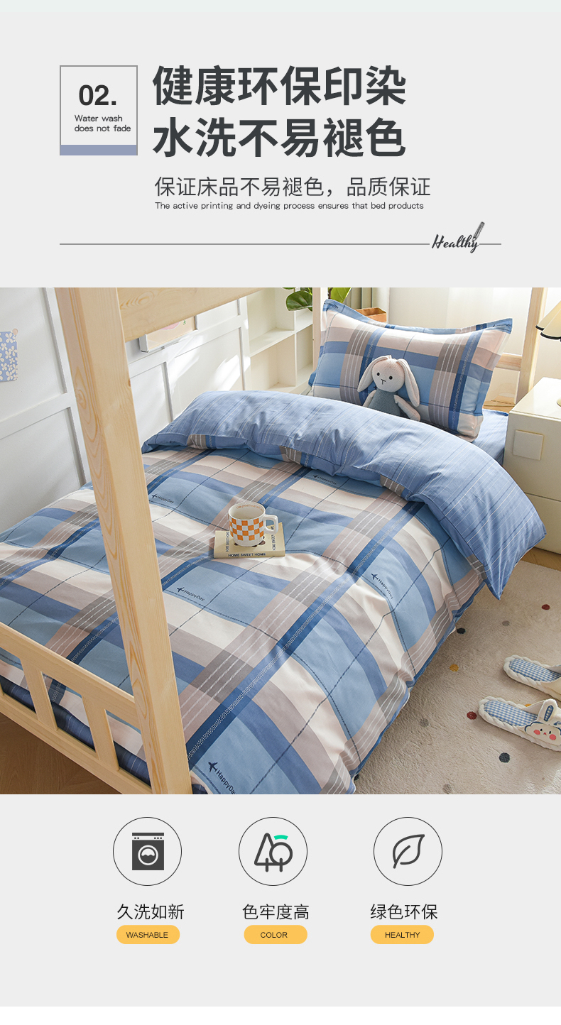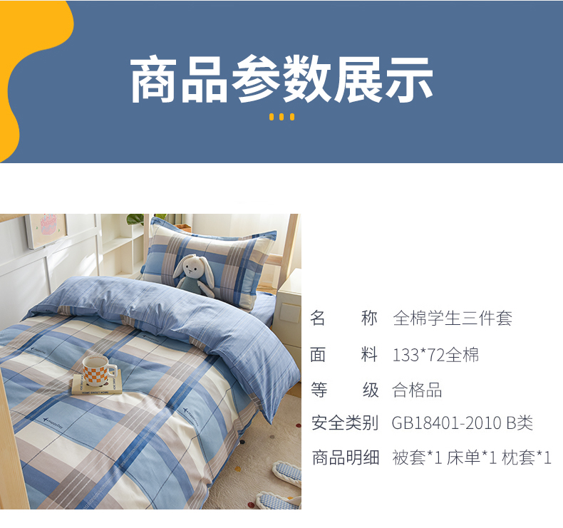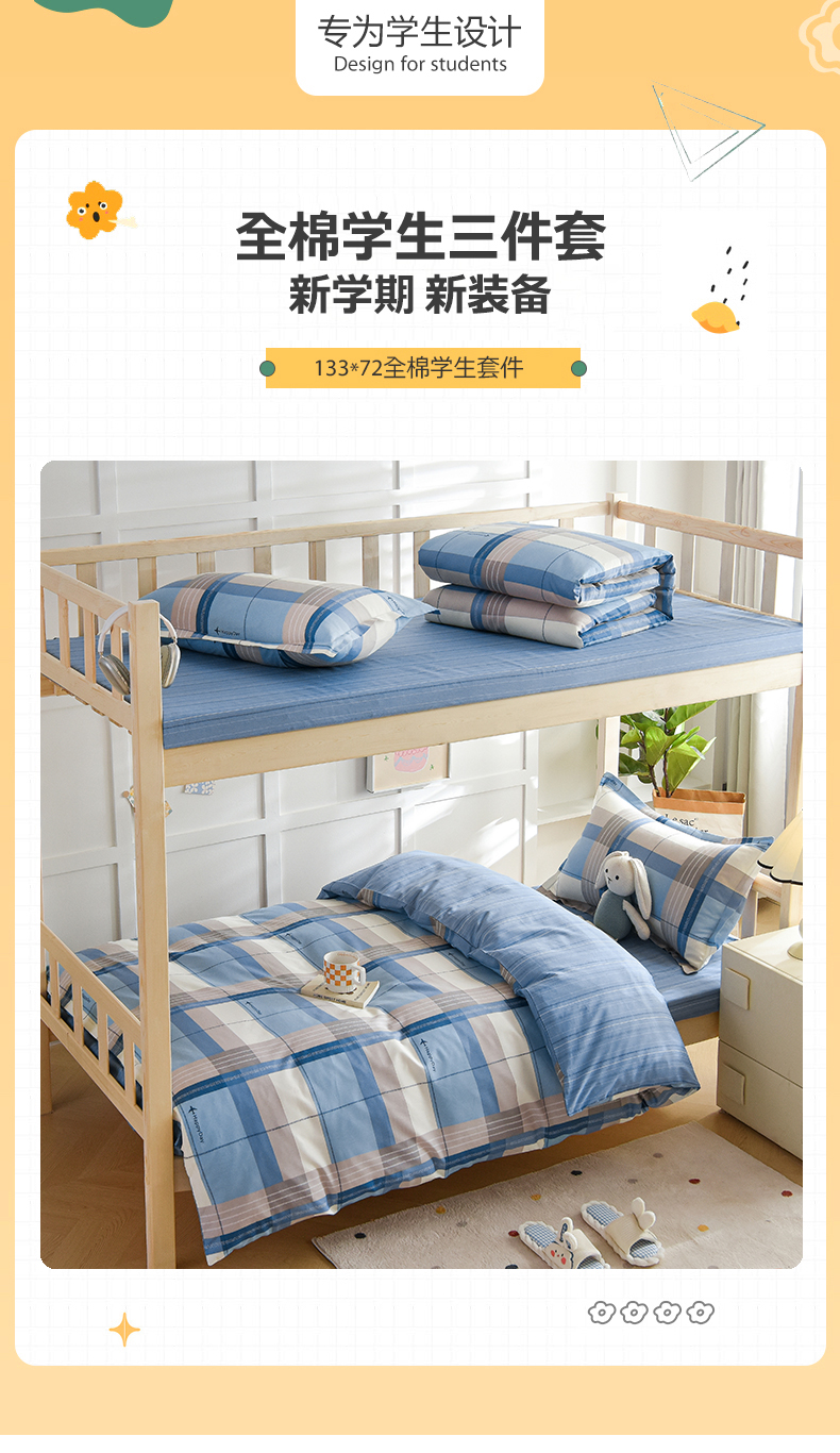 商品名称:鑫宇2025新款13372全棉学生宿舍上下铺三件套床单款床笠款可定制 米拉之城-蓝