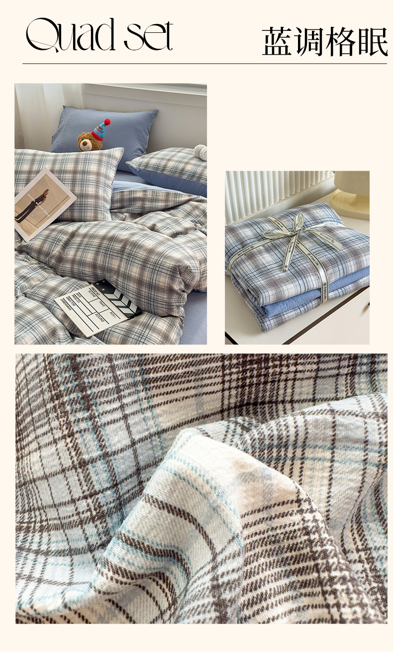 当前位置: 91家纺网 > 商品网购 > 床品套件 > 四件套 > 双层纱四件套 > 亨通家纺 2025新款复古原麻双层纱格子系列四件套 青格漫眠