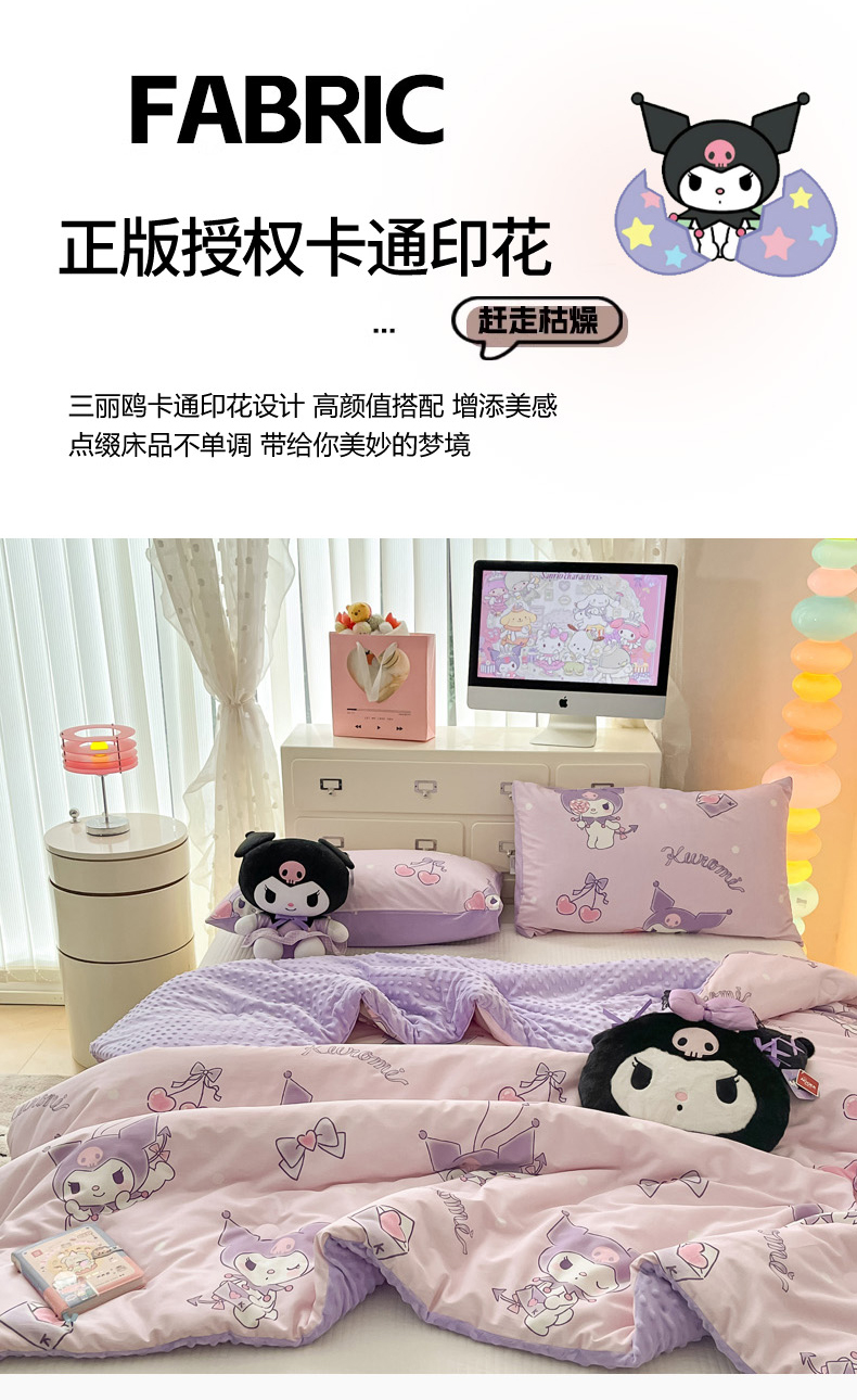 • 91家纺网 家纺一手货源 找家纺 暮思家居 2025新款正版授权三丽鸥A版纯棉B版安抚豆豆绒春秋被冬被豆豆被被子被芯系列 豆豆被-气球库洛米