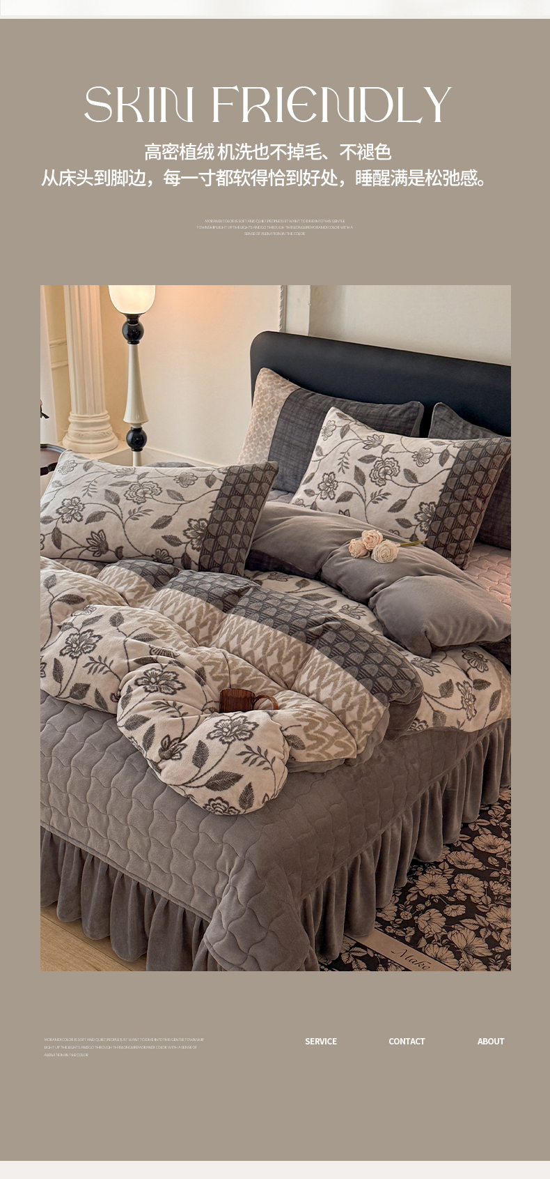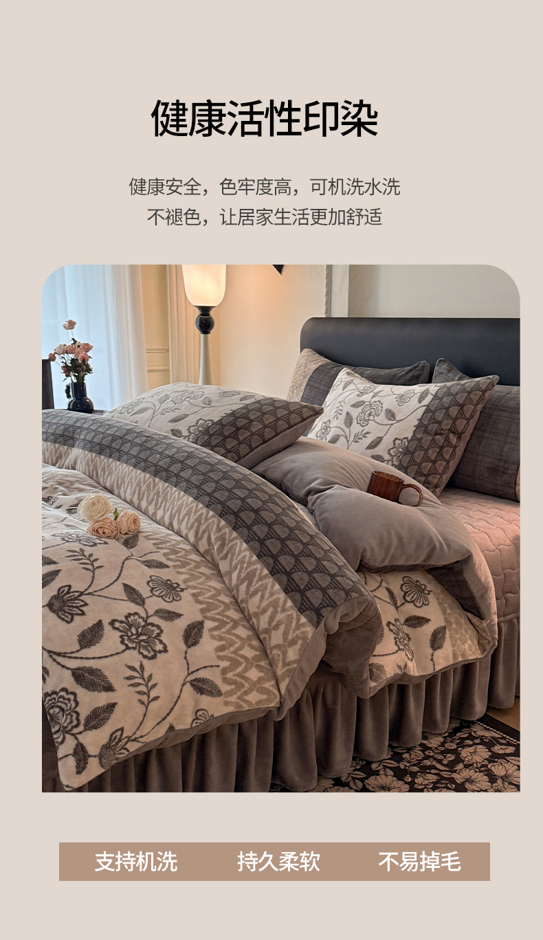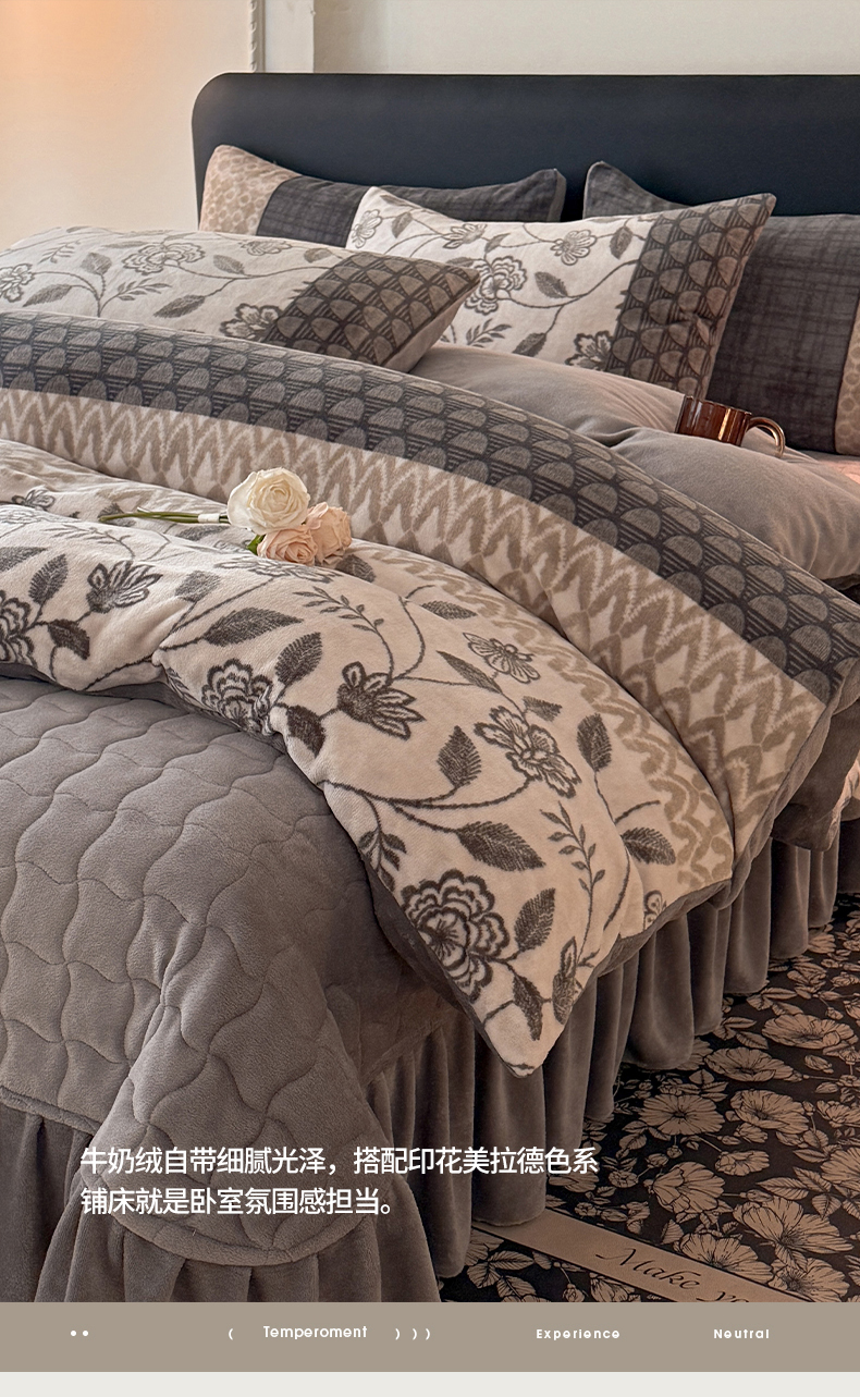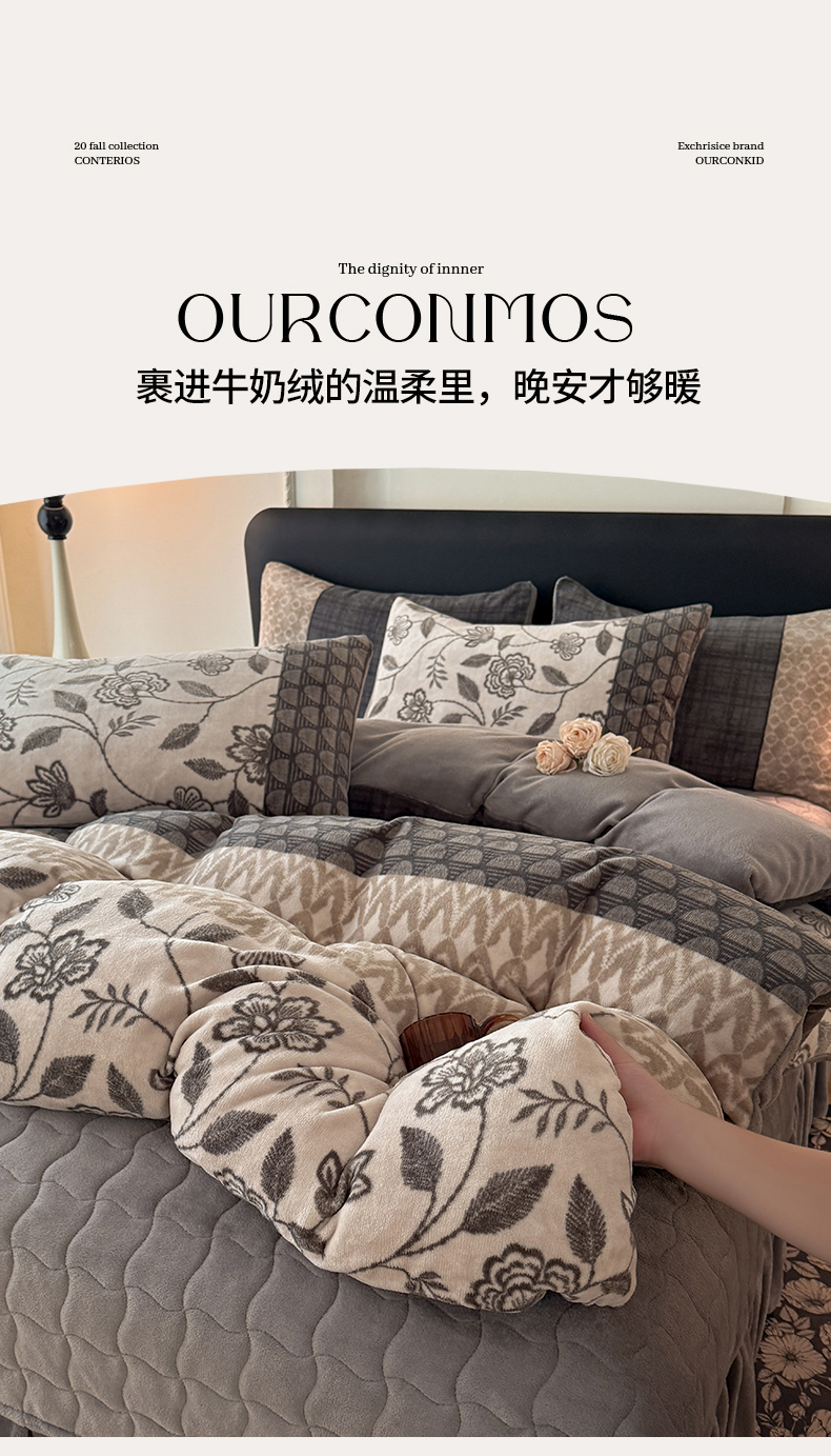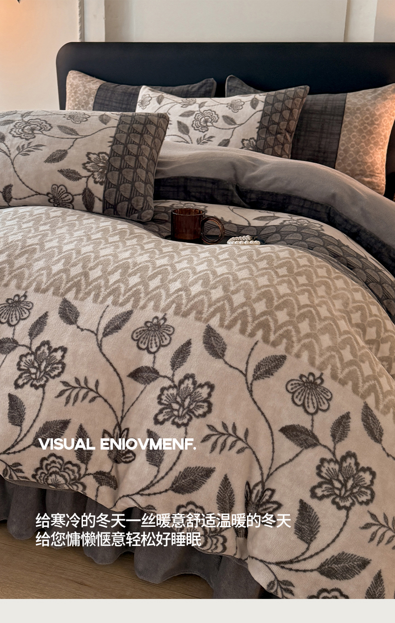 当前位置: 91家纺网 > 商品网购 > 床品套件 > 四件套 > 其它四件套 > 金盛皇朝家纺 2025新款高克重美拉德牛奶绒床单床盖单件三件四件套 花影拓白