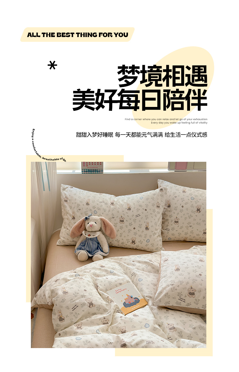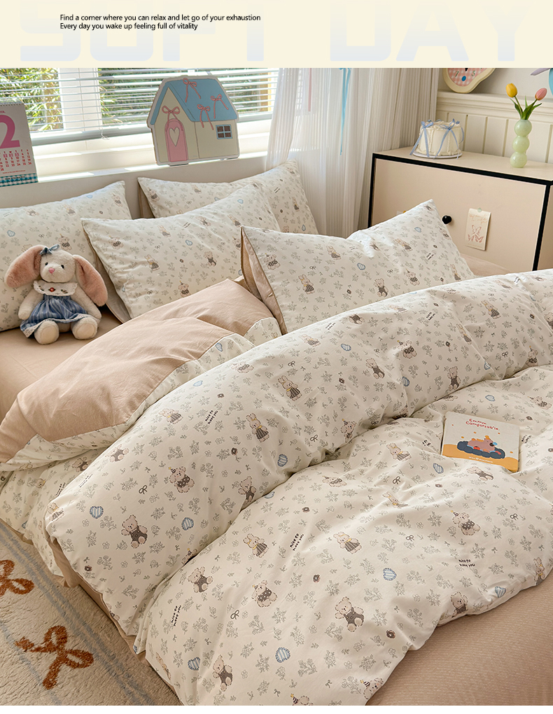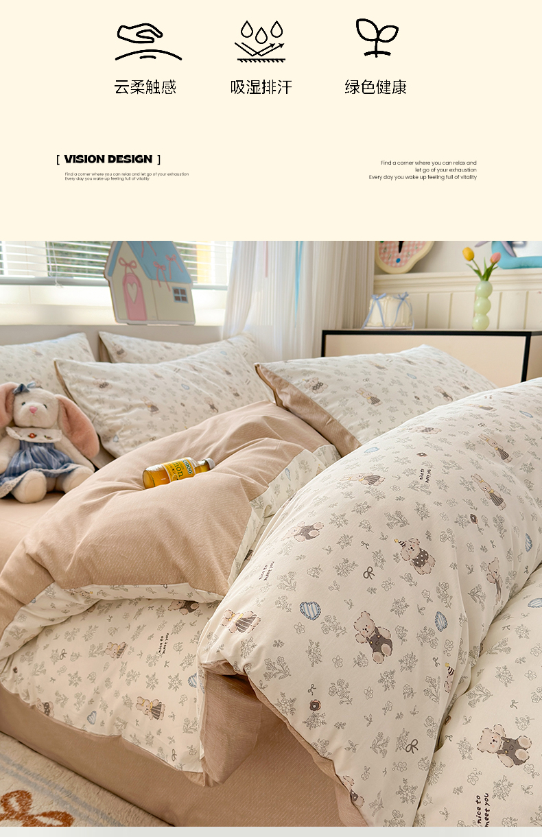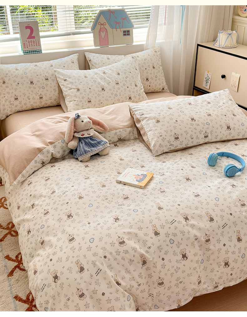 (总)清雅福 2026春夏新款INS小清新40支全棉13372四件套第一批,棒棒糖女孩,春之约定,点点小狗,动物聚会,豆丁小熊,粉心狗,富贵狗,果子象,含羞草,假日小狗