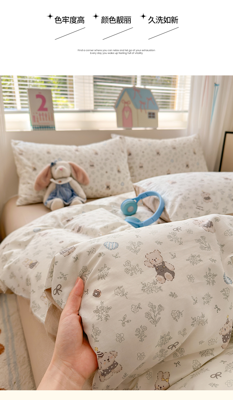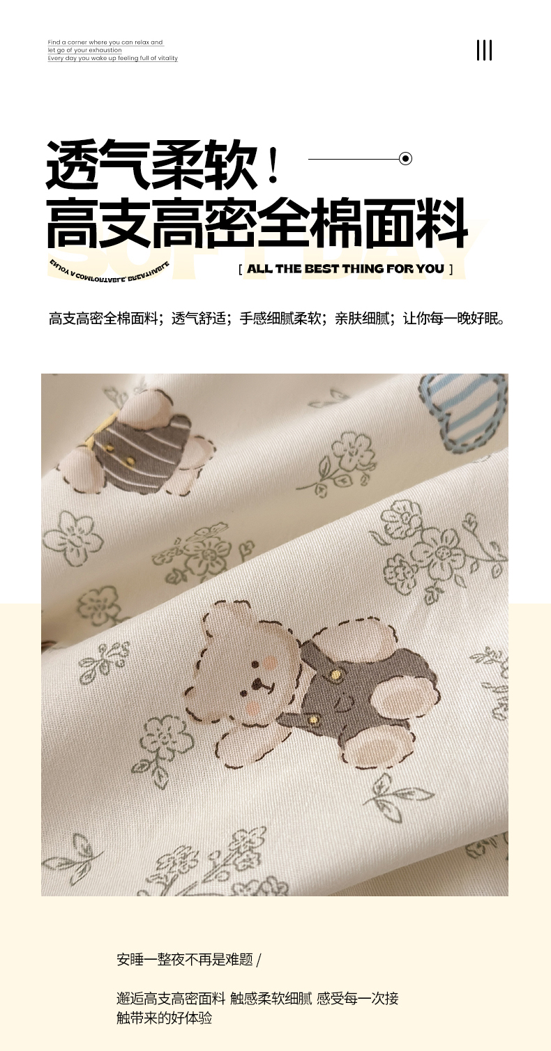 (总)清雅福 2026春夏新款INS小清新40支全棉13372单被套第一批,棒棒糖女孩,春之约定,点点小狗,动物聚会,豆丁小熊,粉心狗,富贵狗,果子象,含羞草,假日小狗