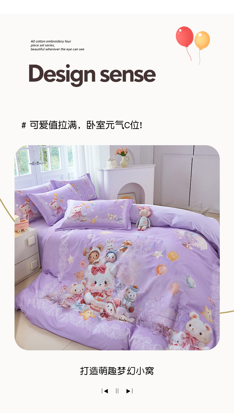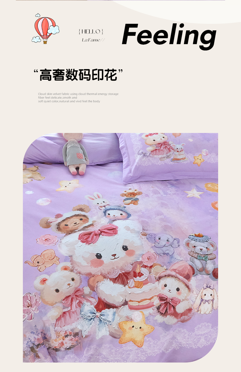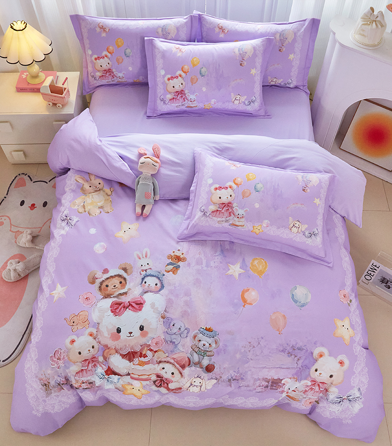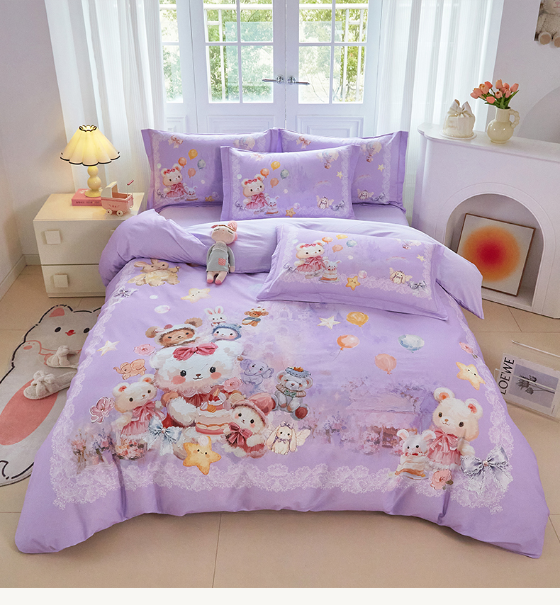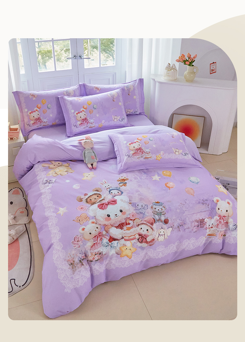 商品名称:格里芬家纺 2025新款全棉纯棉加厚油画风大版卡通印花四件套 (控价标准不低于238元) 魔仙宝-紫