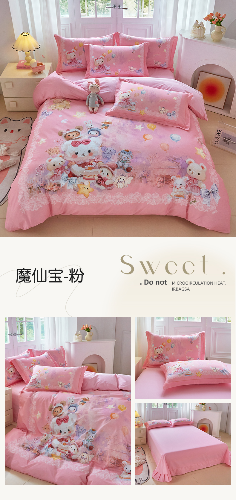 (总)格里芬家纺 2025新款全棉纯棉加厚油画风大版卡通印花四件套 (控价标准不低于238元),墨宝妞妞-绿,墨宝妞妞-粉,魔仙宝-紫,魔仙宝-粉