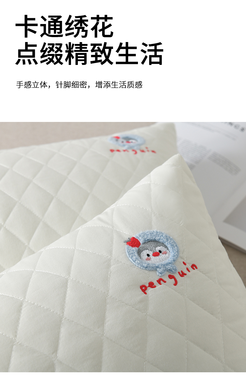 (总)小猫派 2025新款防口水防头油常规绣花枕套款,粉色企鹅,灰色企鹅,蓝色企鹅,米白企鹅