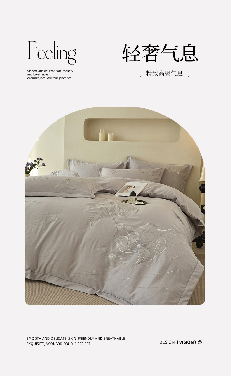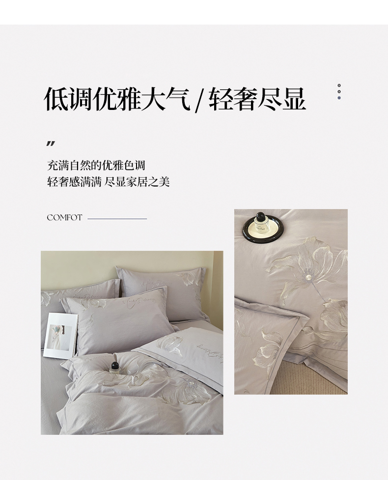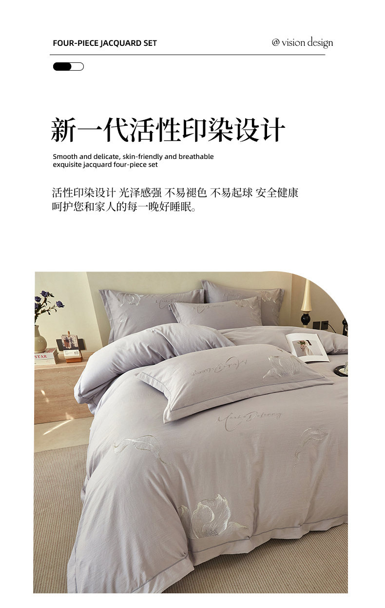 (总)金纱玉纺家纺 2024新款丝加棉大提花工艺四件套,爱卡-优雅灰,奥菲尔-浅驼,花香情缘-玉色,华丽-粉玉,丽资-紫雪青,玛雅盛宴-雾霾灰,西娅-浅豆沙,心语-兰灰,伊利亚-灰驼