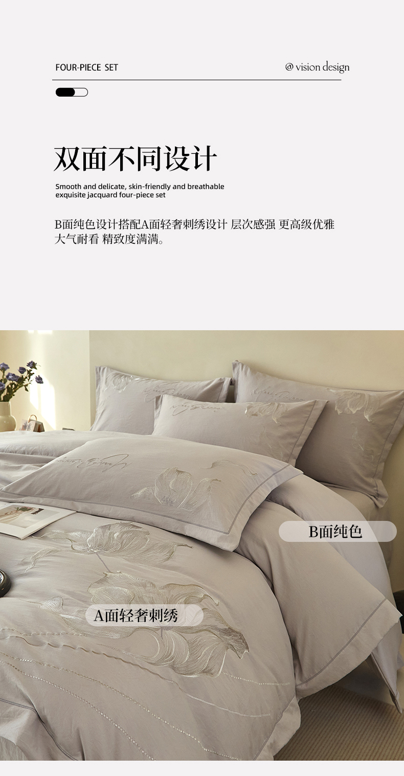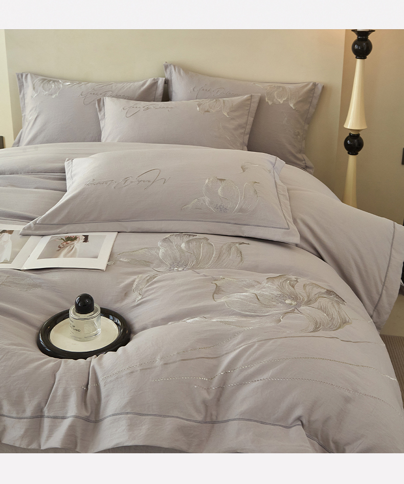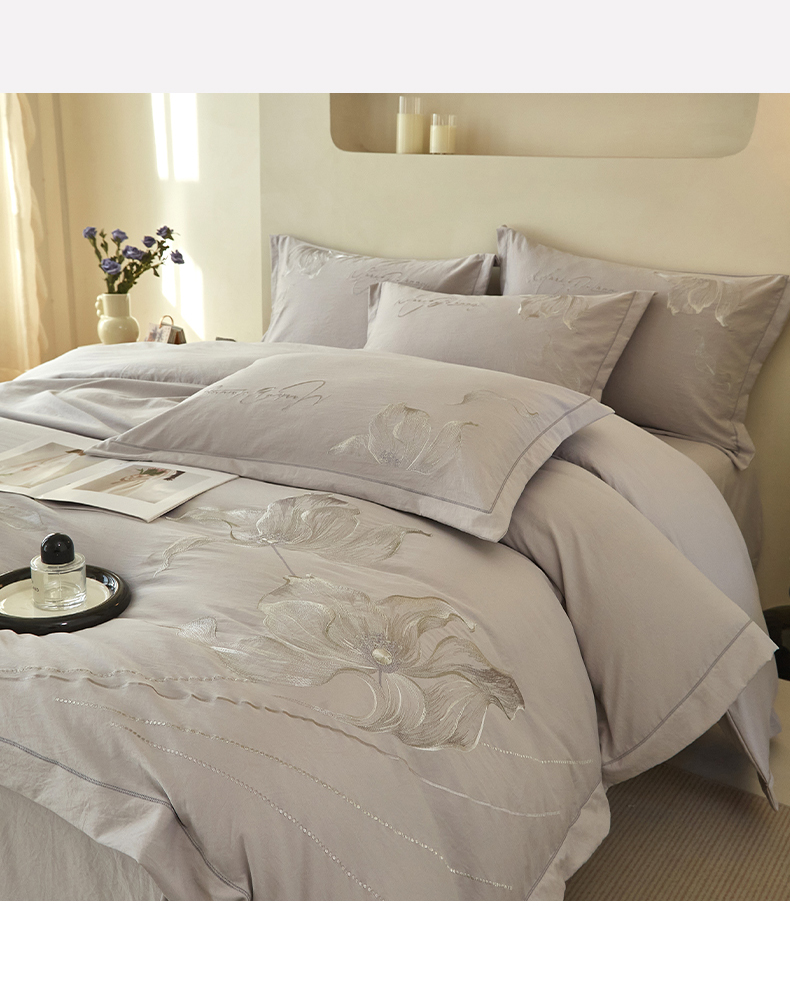 金纱玉纺家纺 2026新款轻奢工艺绣花四件套(提供买家秀) 绚丽-灰
