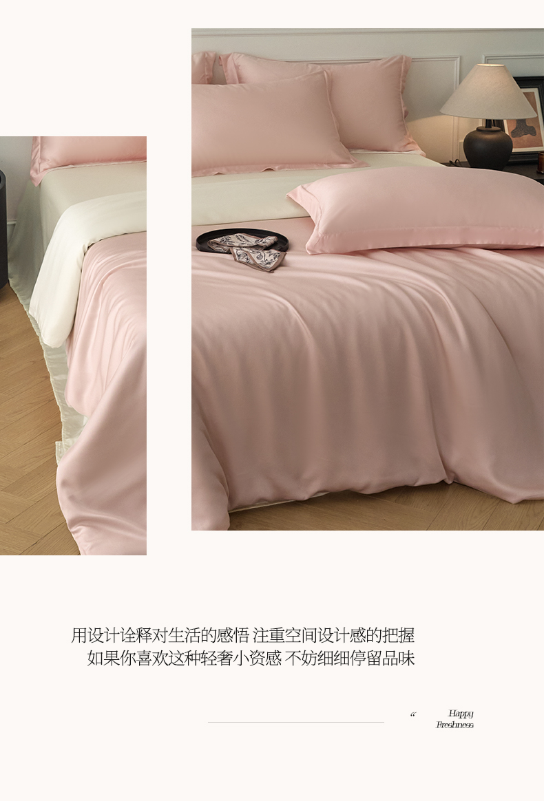 当前位置: 91家纺网 > 商品网购 > 床品套件 > 四件套 > 其它四件套 > 涵宸家纺 2026新款纯色天丝棉四件套-场景一 玫瑰粉+象牙白