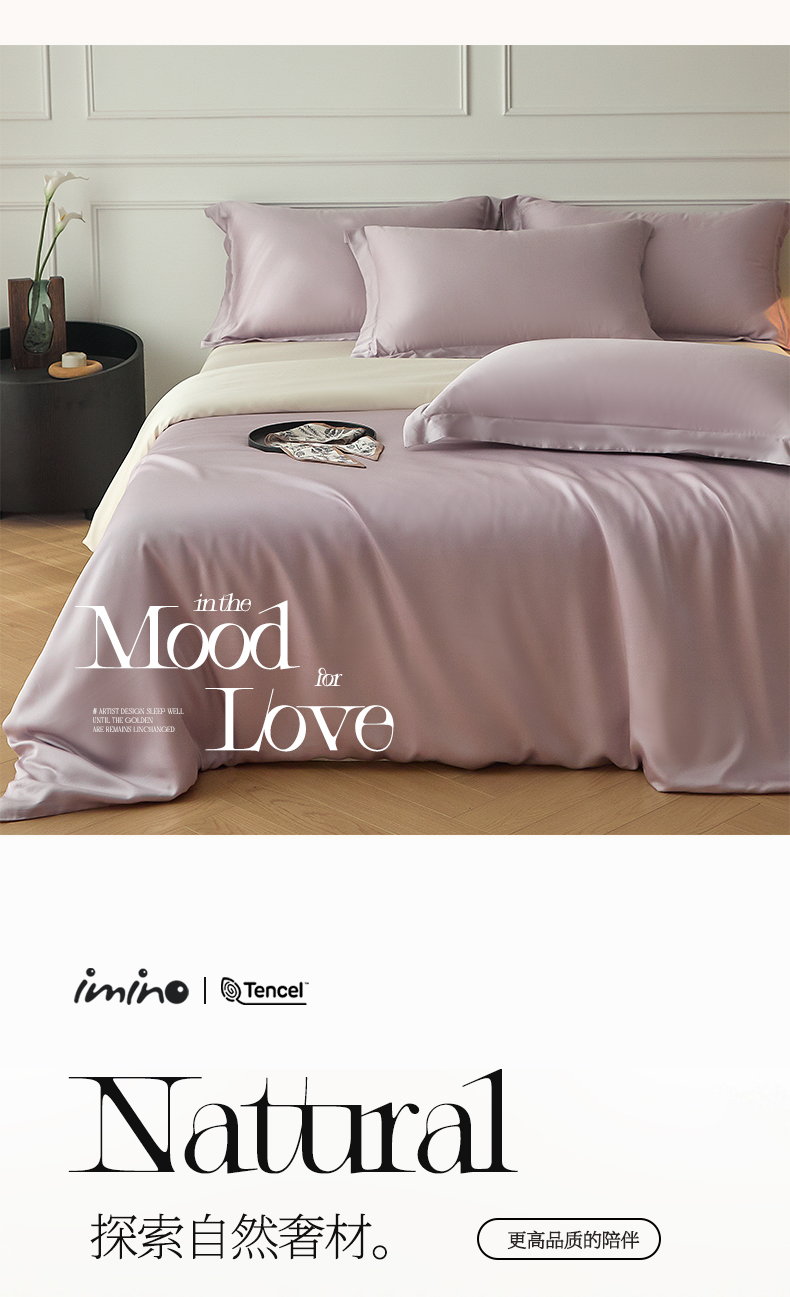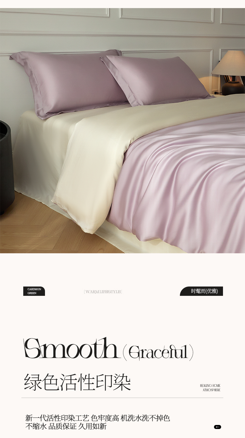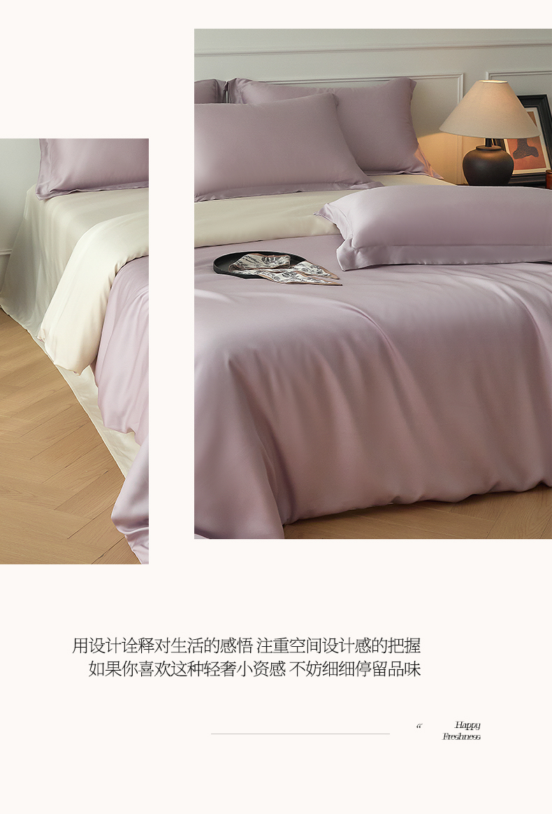 当前位置: 91家纺网 > 商品网购 > 床品套件 > 四件套 > 其它四件套 > 涵宸家纺 2026新款纯色天丝棉四件套-场景一 紫语+象牙白