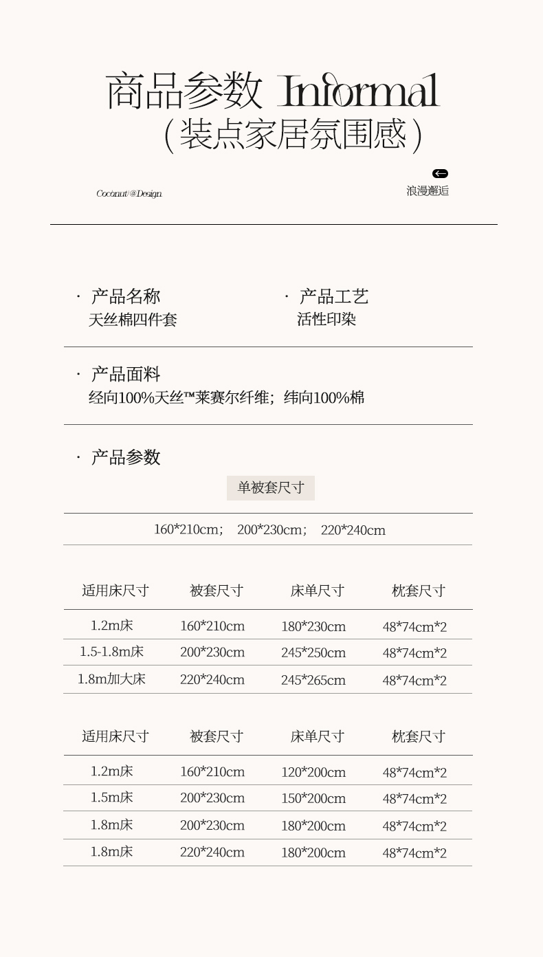 1.8m床笠款四件套 | ¥155.00 |