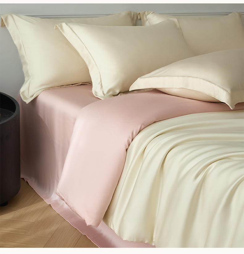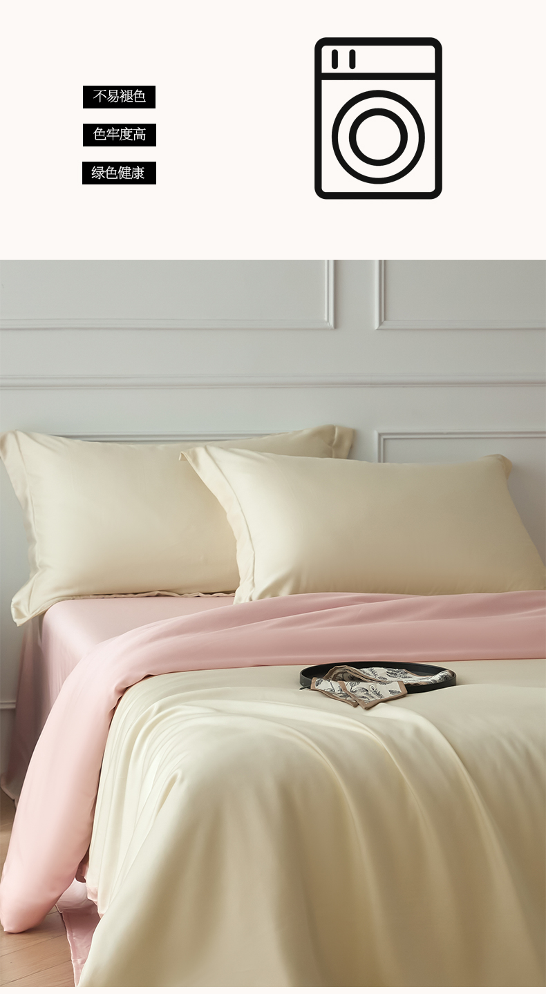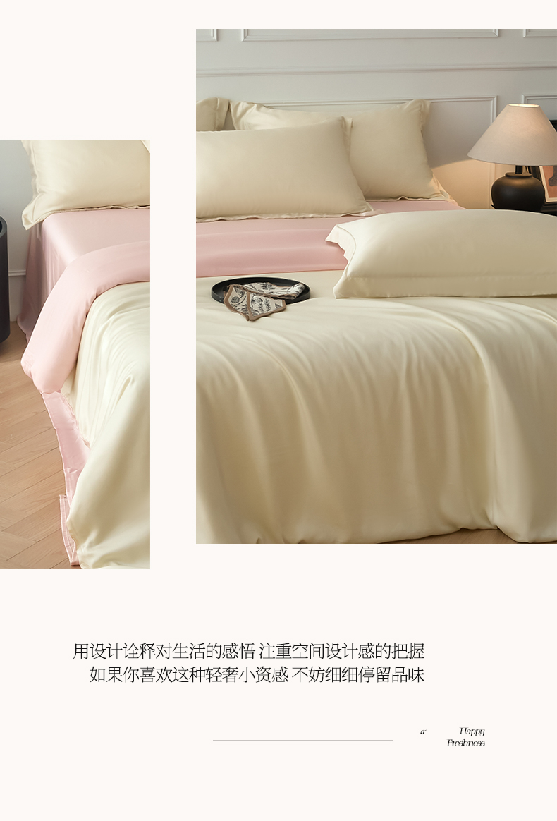 涵宸家纺 2026新款纯色天丝棉单被套-场景一 象牙白+玫瑰粉