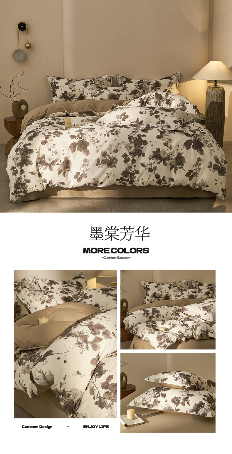 商品名称:涵宸家纺 2026新款棉麻数码印花四件套 墨棠芳华
