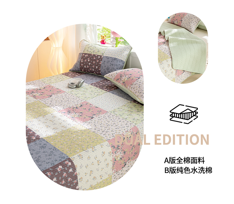 • 91家纺网 家纺一手货源 找家纺 X猫先生 2026新款全棉床盖小清新夹棉床单炕盖四季跑量款 幽兰情丝