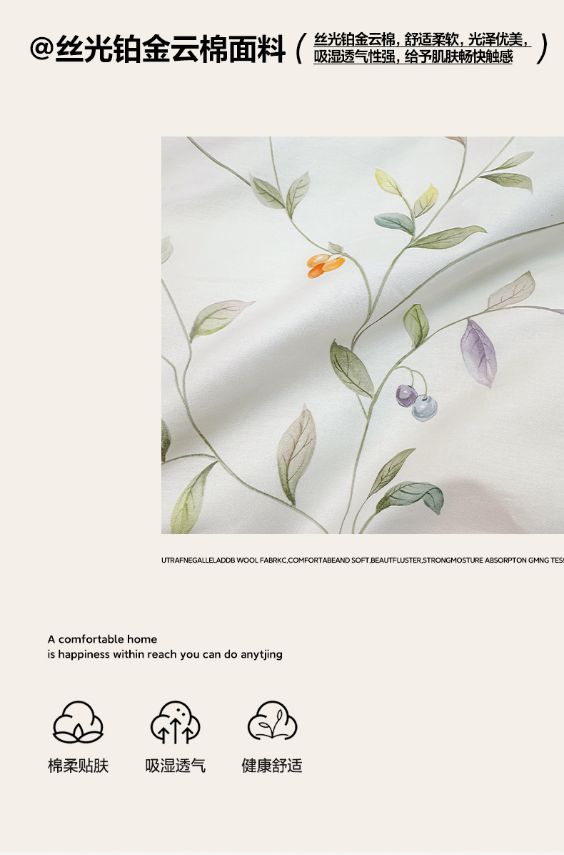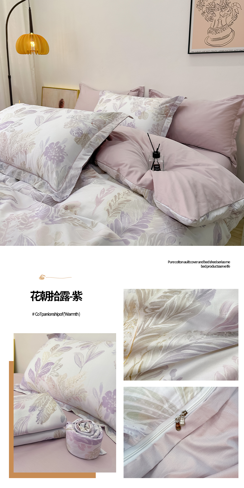 (总)橙艺家居 2026新款丝光铂金云棉印花四件套 本店线上严格控价,券后、活动后标准不得低于218元,以此类推。请各位老爷严格遵守,以免低价后再调整价格,影响链接权重,花朝拾露-紫,花田诗梦-粉,花颜外-粉,蔓月-紫,梦叶集-粉,慕枝下-绿,千叶密语-粉,闻栖-绿,雅莹-绿,叶间绒雪-兰,叶木槿-米,予她-粉,自然低语-绿,芙晚,奈亚,婉情-灰