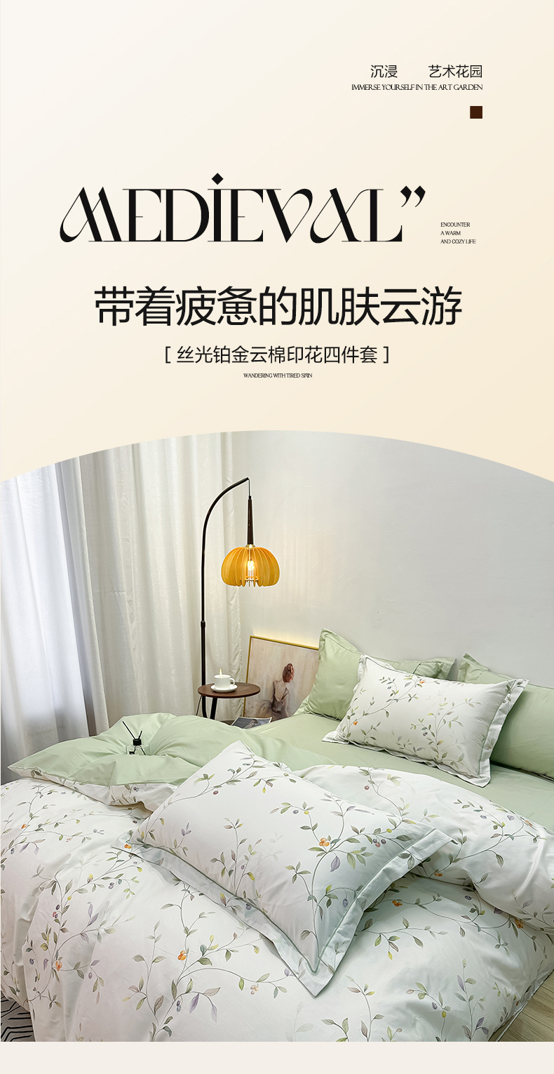 商品名称:橙艺家居 2026新款丝光铂金云棉印花四件套 本店线上严格控价,券后、活动后标准不得低于218元,以此类推。请各位老爷严格遵守,以免低价后再调整价格,影响链接权重 闻栖-绿
