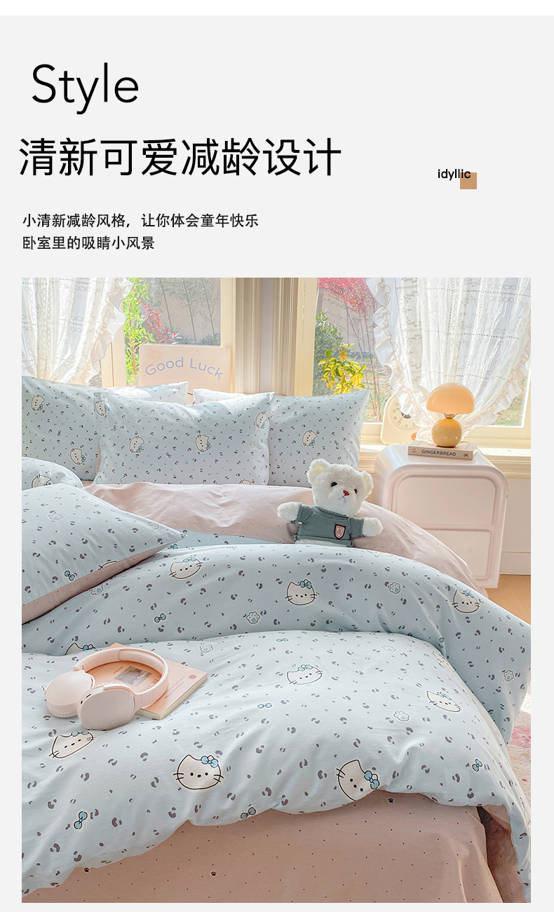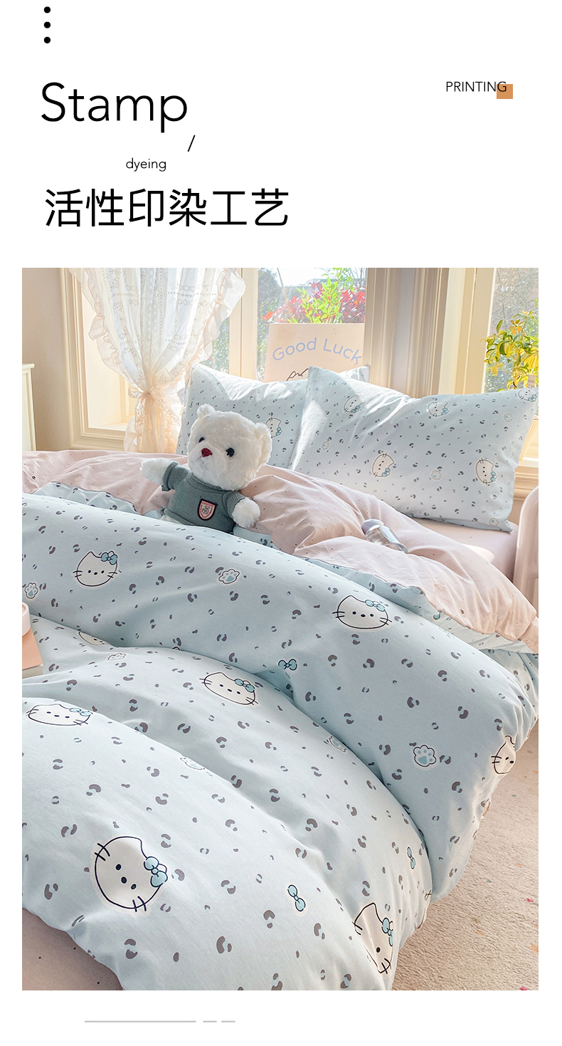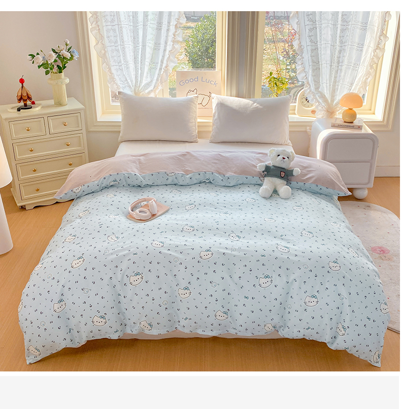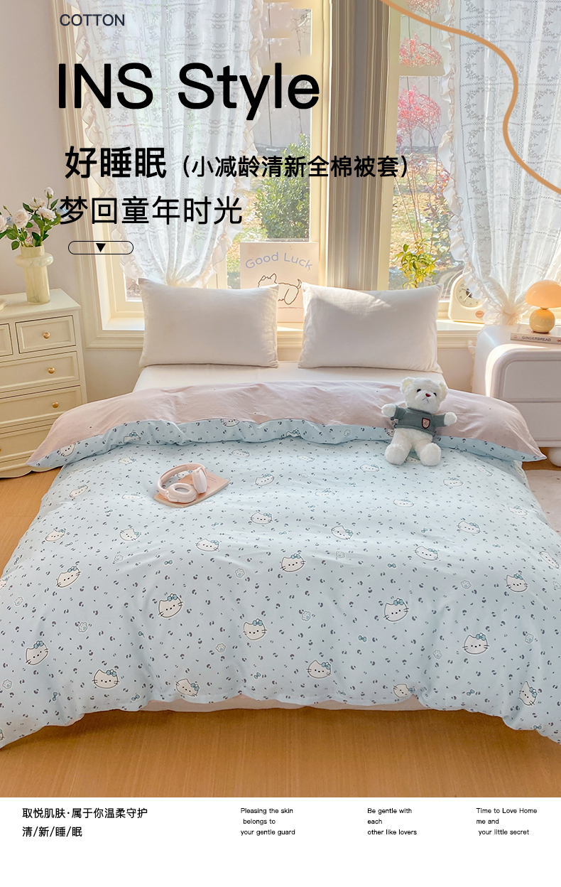 商品名称:黑马家居 2026新款13070全棉印花小清新卡通花卉单品被套系列 乖巧凯蒂