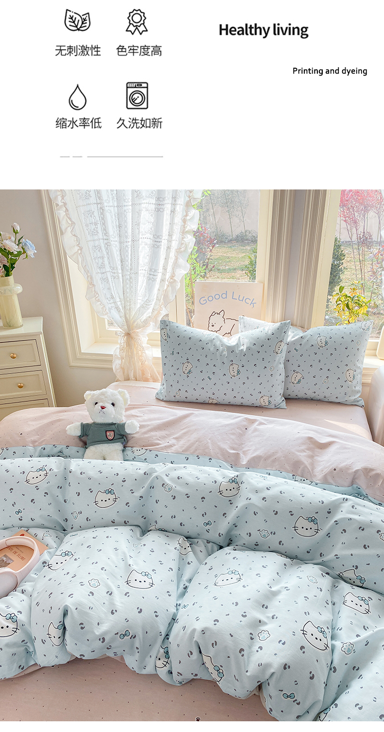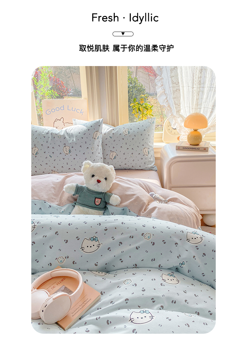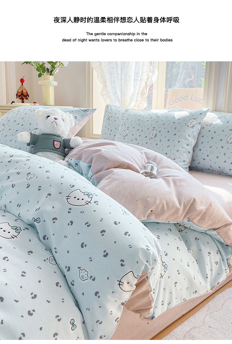 商品名称:黑马家居 2026新款13070全棉印花小清新卡通花卉单品被套系列 乖巧凯蒂