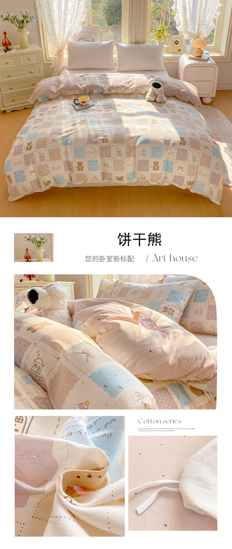 (总)黑马家居 2026新款13070全棉印花小清新卡通花卉四件套系列,饼干熊,彩绘小狗,丛林乐园,乖巧凯蒂,堇紫盈香,凯蒂公主,恐龙派对,懒猫猫,马上有钱,魔法星星人,墨蝶,牛油果,泡泡熊,塞浦路斯,汀兰点素,晚安星星人,星星宝贝,幸运叶,宇航员,紫韶