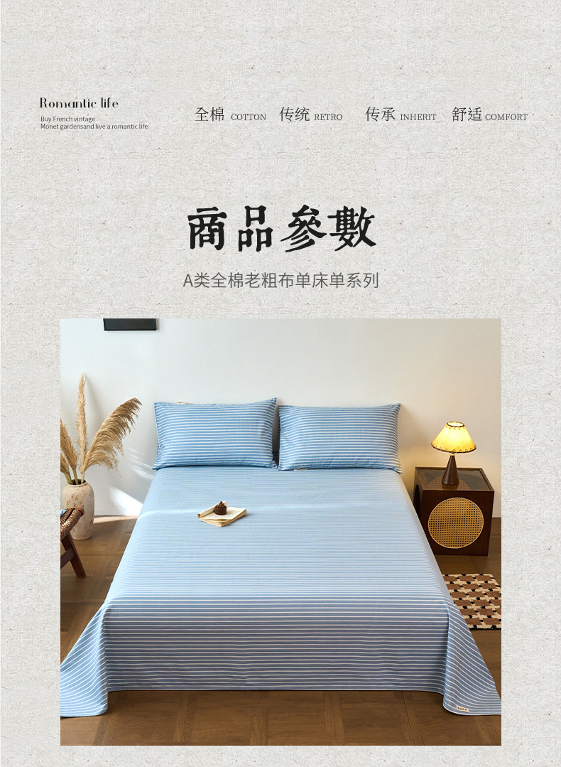 商品名称:春皖家纺 2026春夏新品简约款老粗布系列床单单品床单床单单件 细川-聚