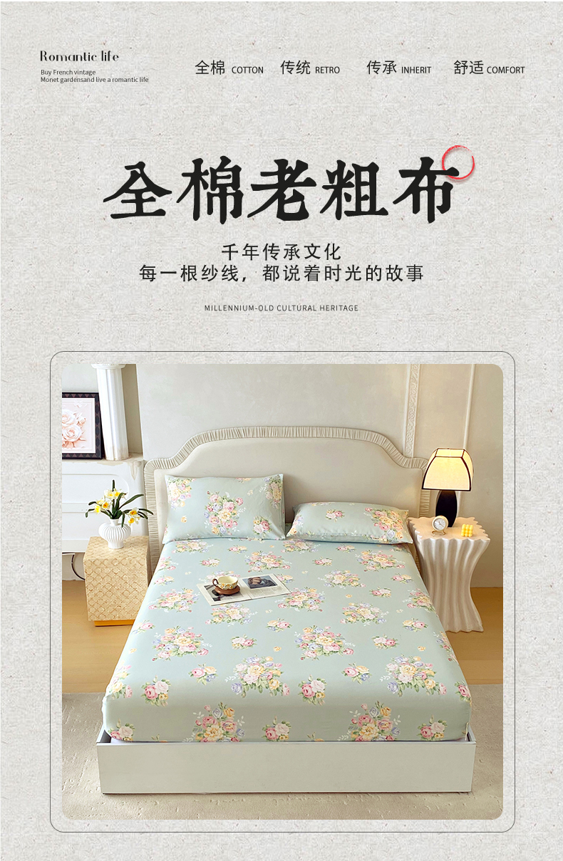 (总)春皖家纺 2026春夏新品简约款老粗布系列床笠品单床笠 床笠单件