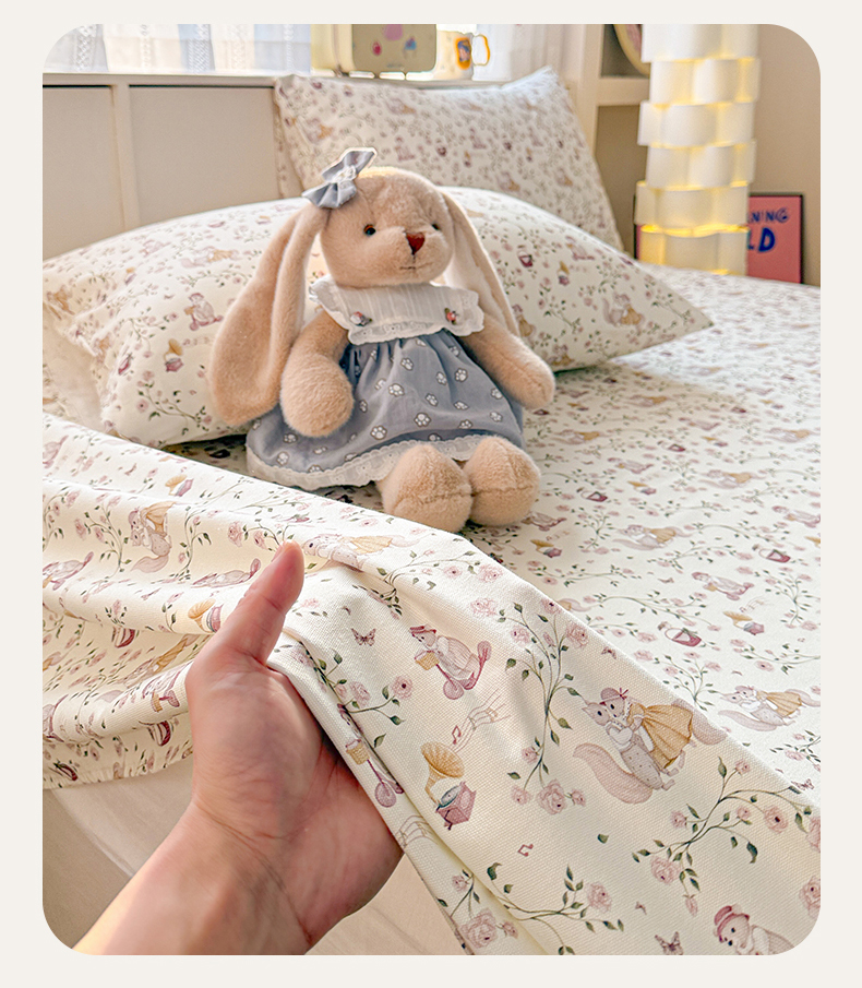 • 91家纺网 家纺一手货源 找家纺 名兮家居 2026新款全棉A类卡通简约时尚老粗布床单 森林舞会