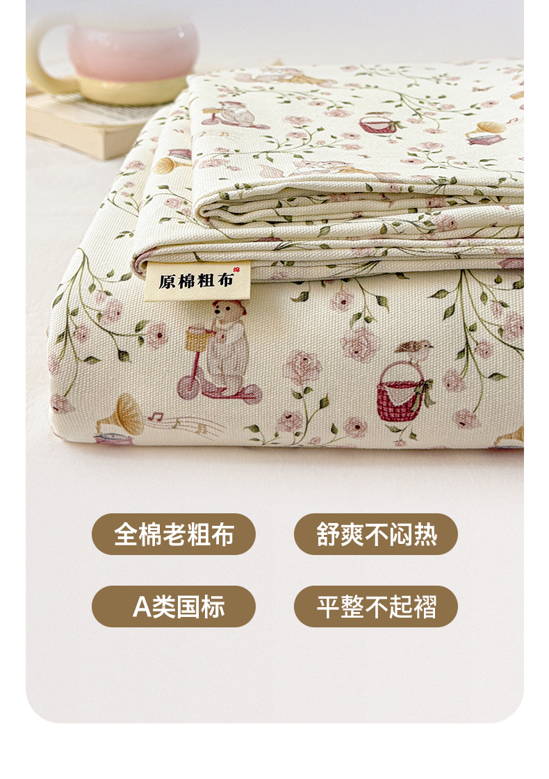 (总)名兮家居 2026新款全棉A类卡通简约时尚老粗布床单,彩色点点熊,繁花-蓝,繁花-绿,海草,花兔兔,花漾小兔,简约格,蓝格龙宝,蓝小格,麦浪织纹,帽帽企鹅,千鸟格,森林舞会,竖条咖,竖条小爱心,藤蔓兔,条纹灰,条纹绿,休闲时光,鸭鸭春游,叶语红果,紫雾