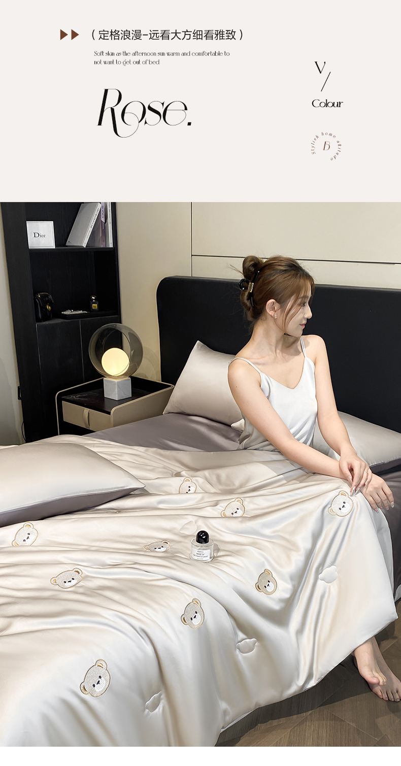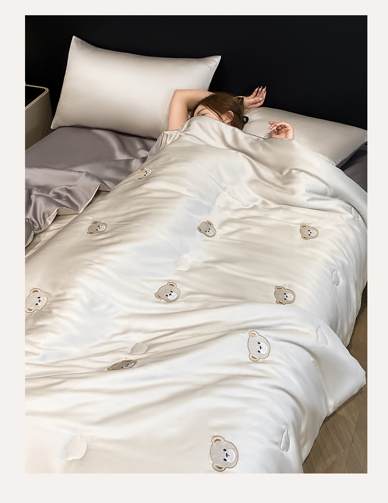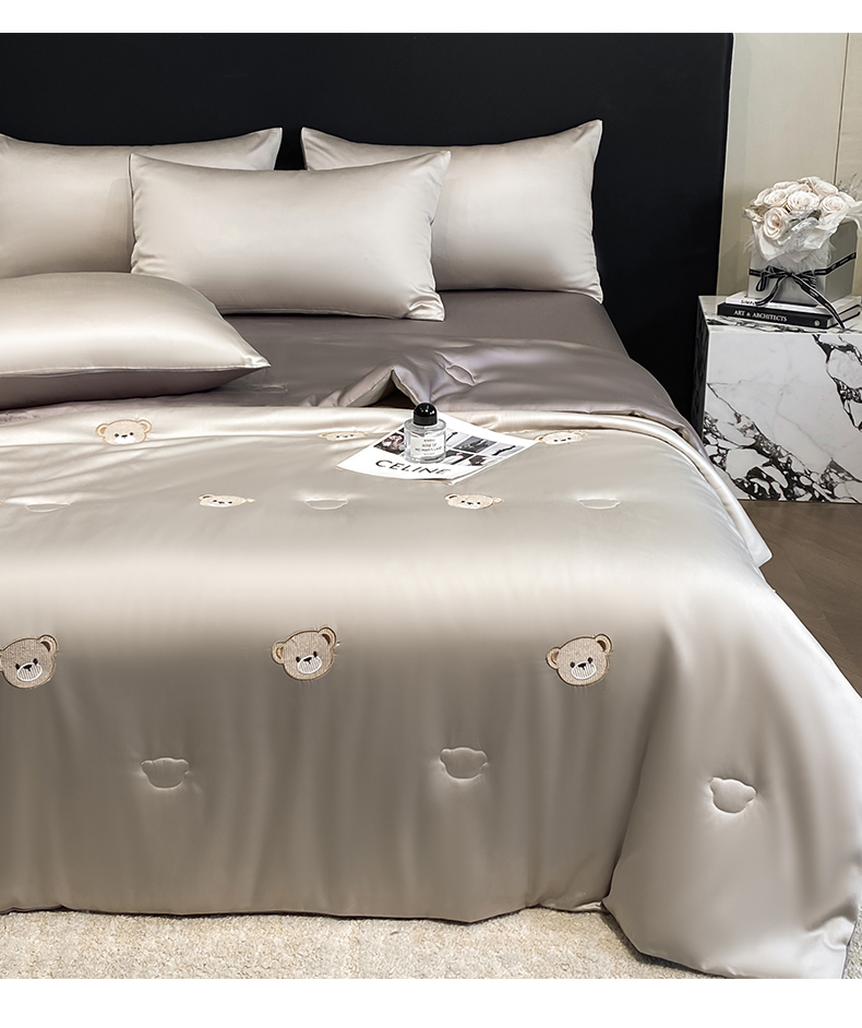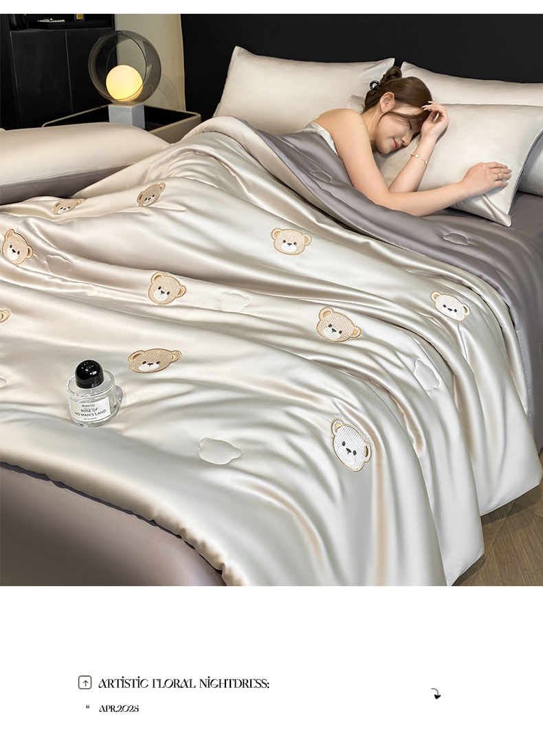 • 91家纺网 家纺一手货源 找家纺 无界 2026新款水洗真丝夏被-散点-贝尔 贝尔 冰川灰+中灰(小熊)