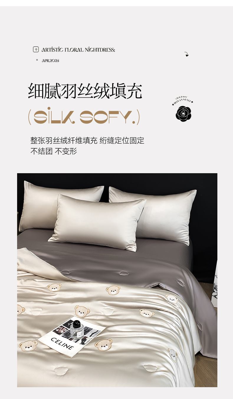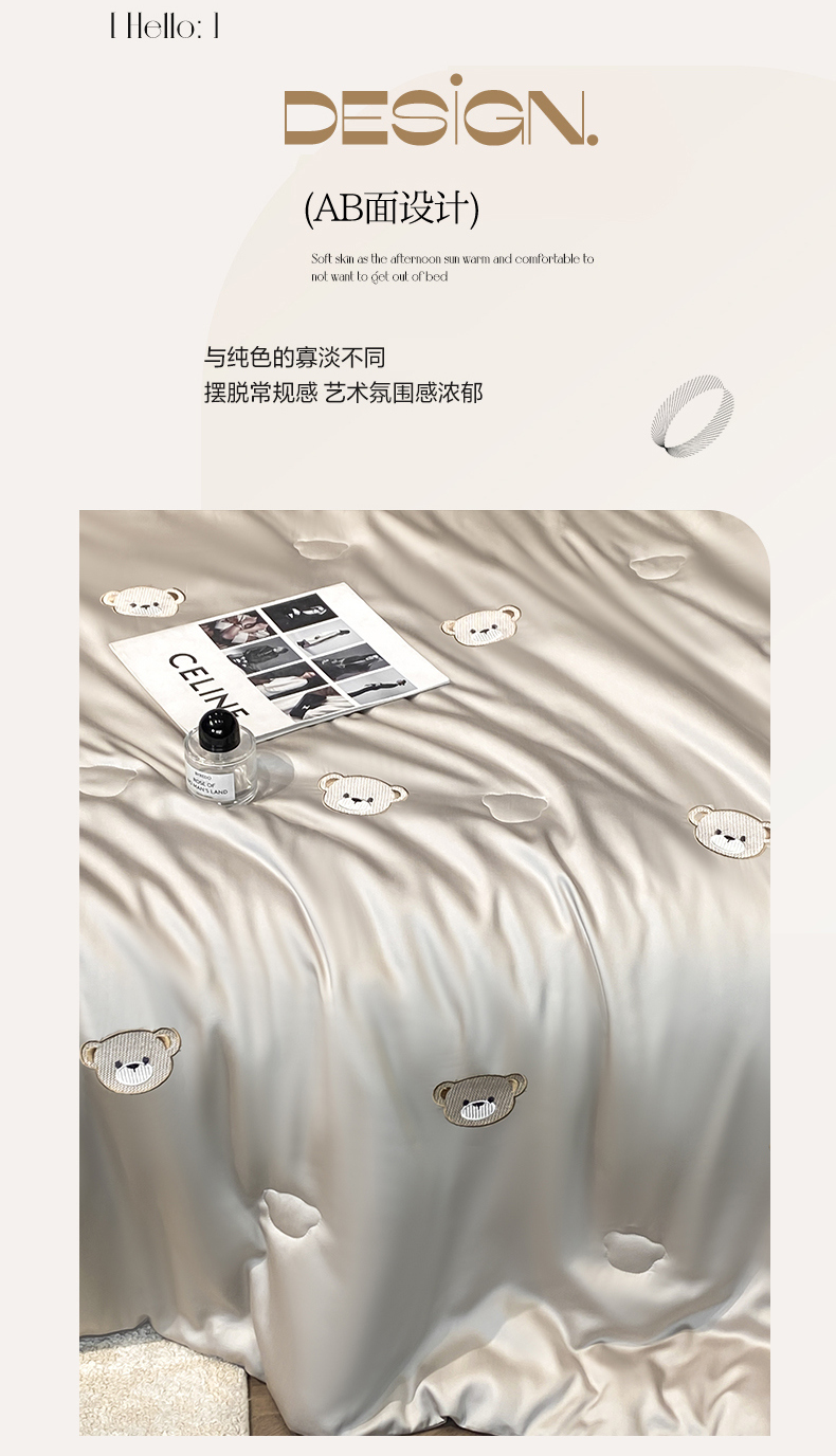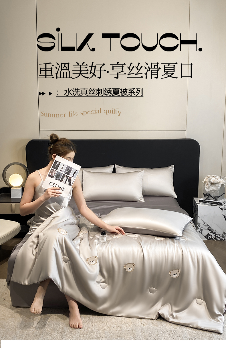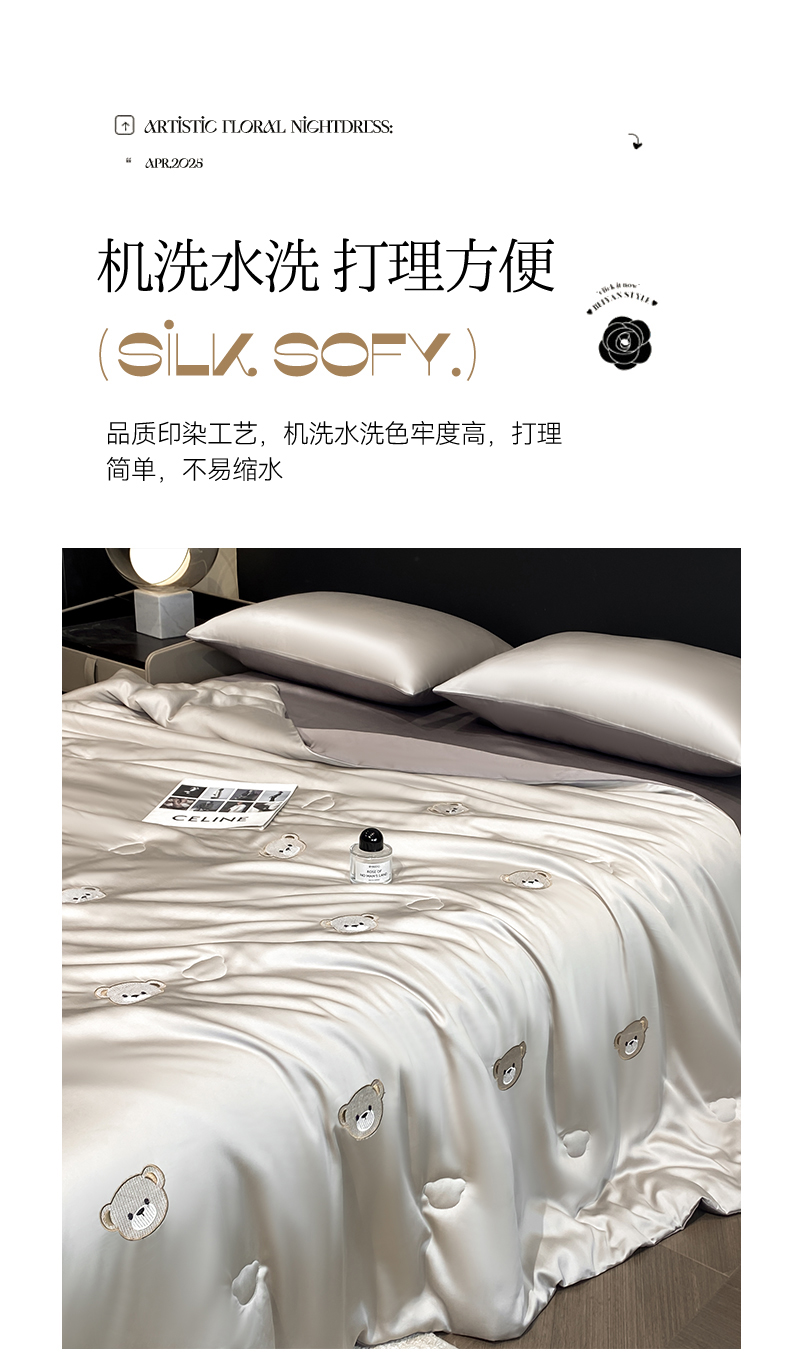 • 91家纺网 家纺一手货源 找家纺 无界 2026新款水洗真丝夏被-散点-贝尔 贝尔 冰川灰+中灰(小熊)