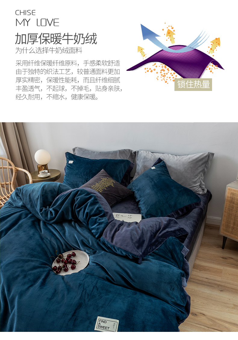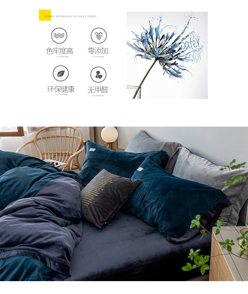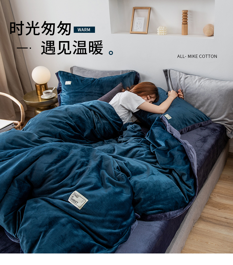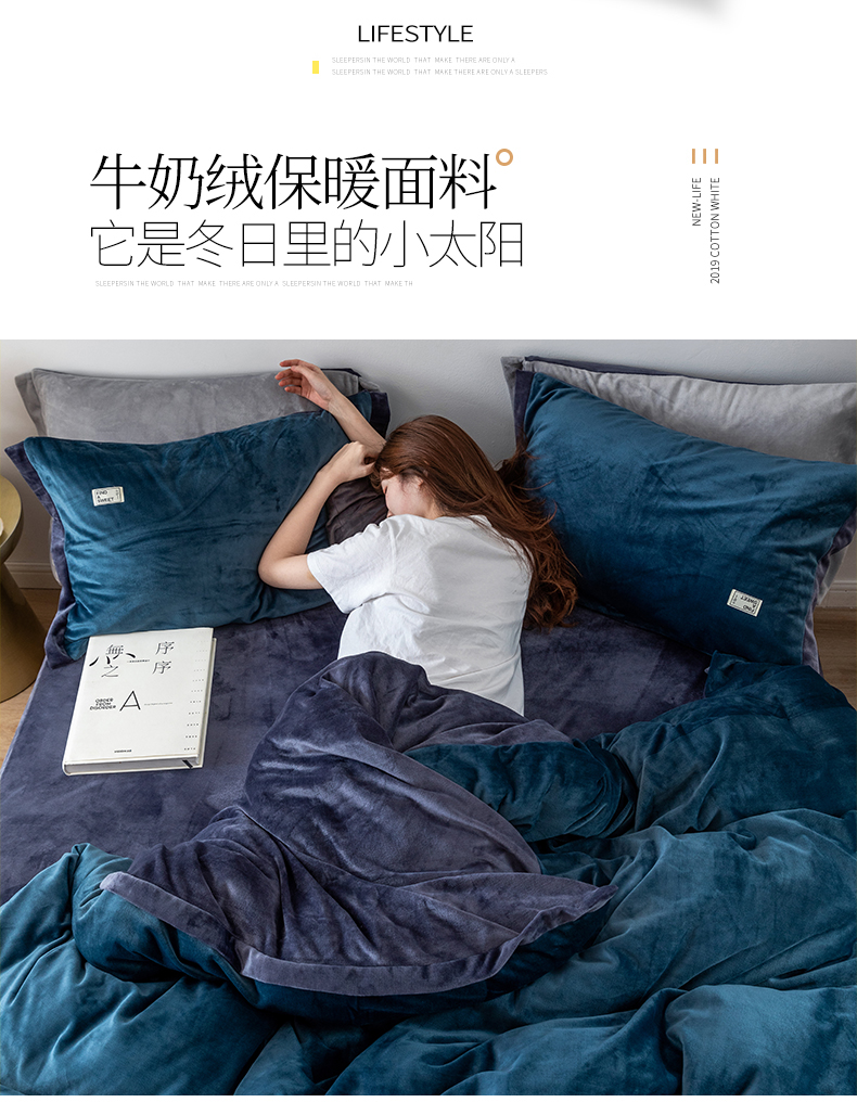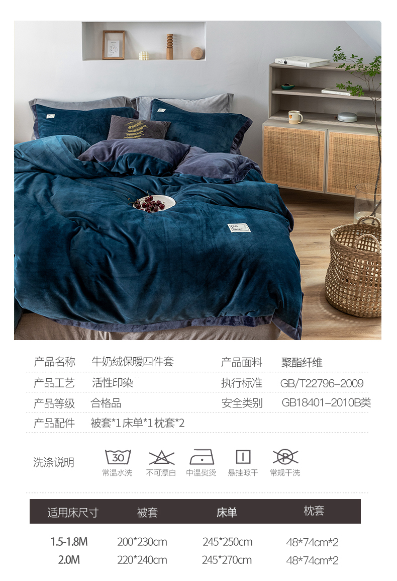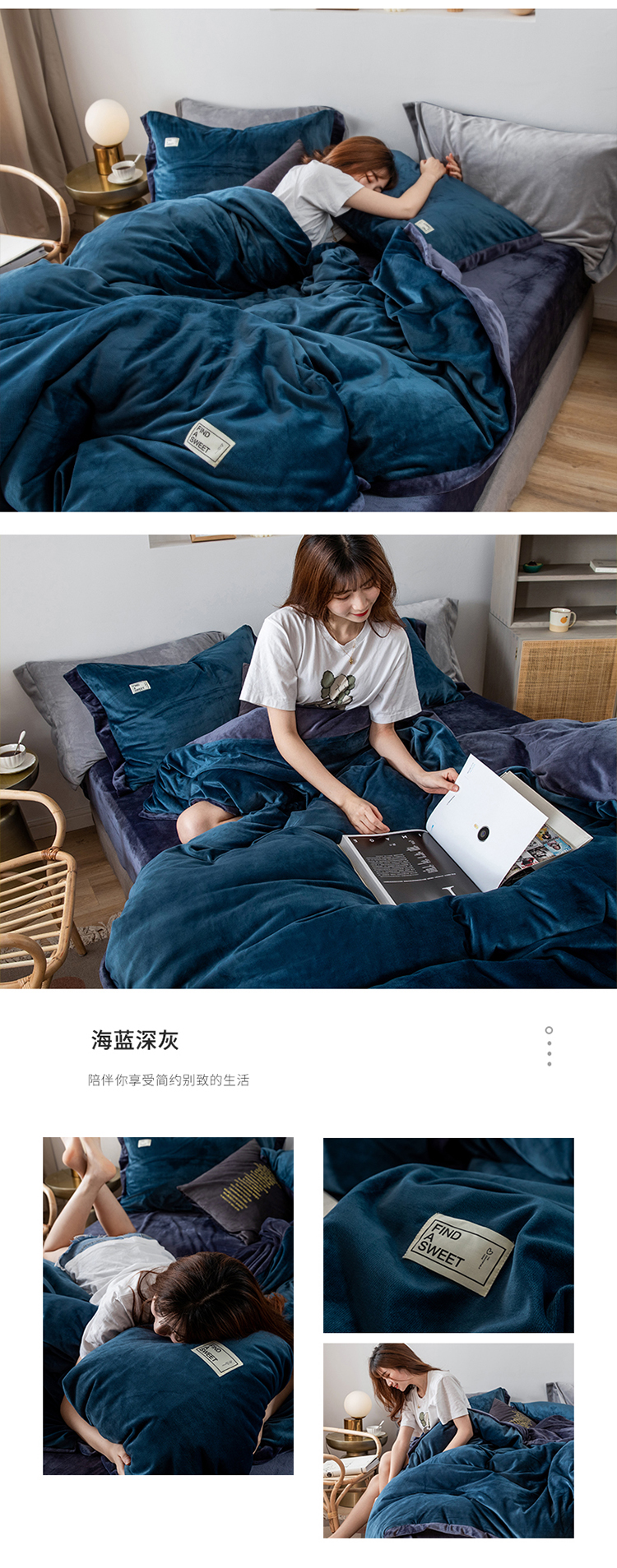 商品名称:润缦 2019新款牛奶绒终版四件套 海蓝深灰