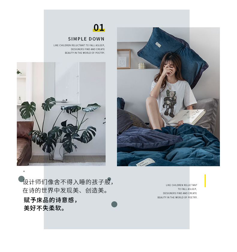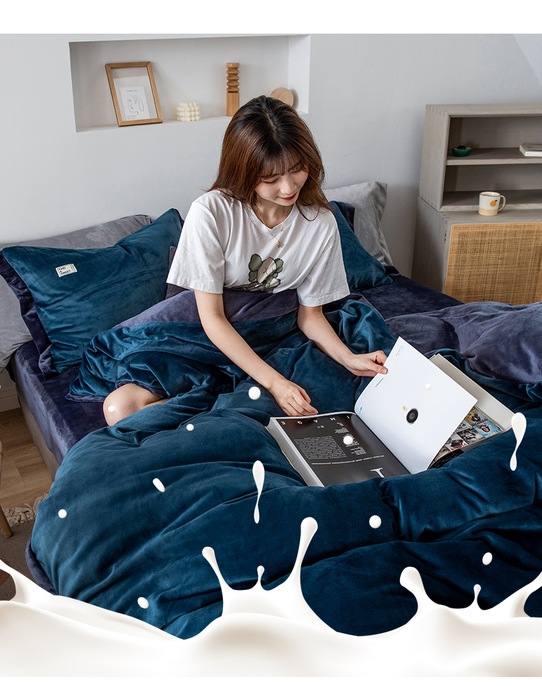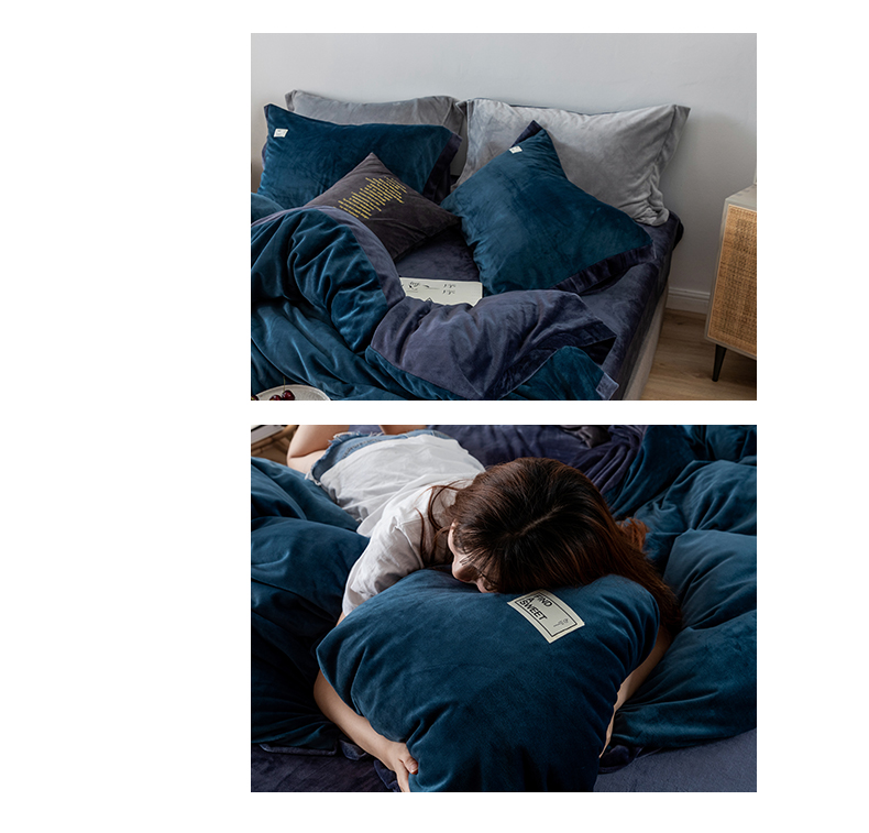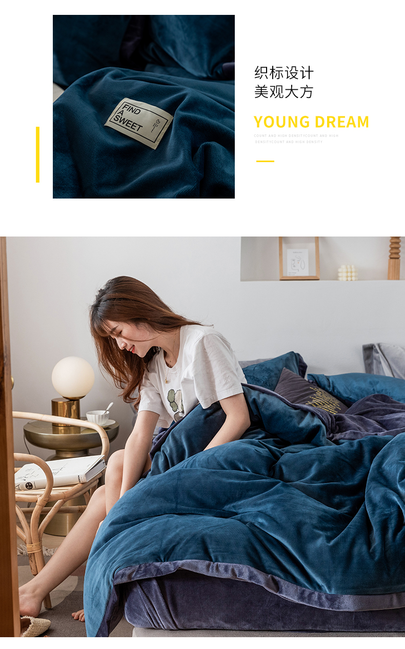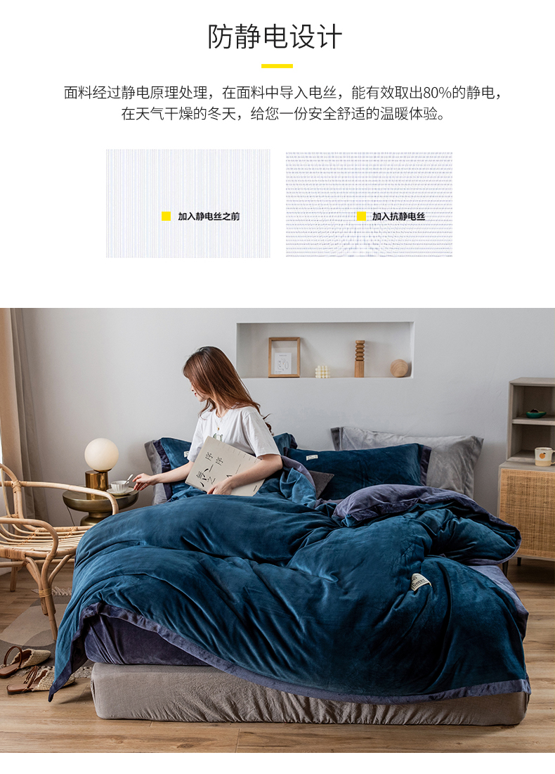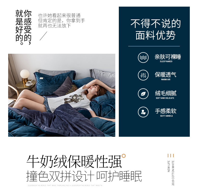 商品名称:润缦 2019新款牛奶绒终版四件套 海蓝深灰