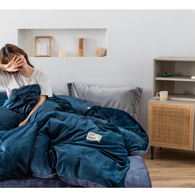 润缦 2019新款牛奶绒终版四件套 海蓝深灰