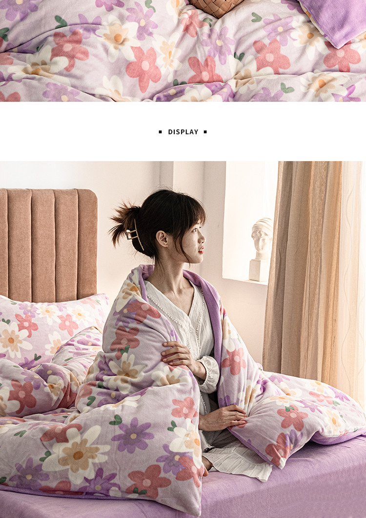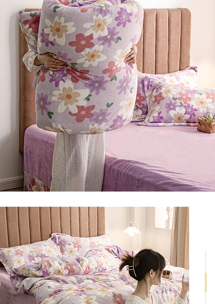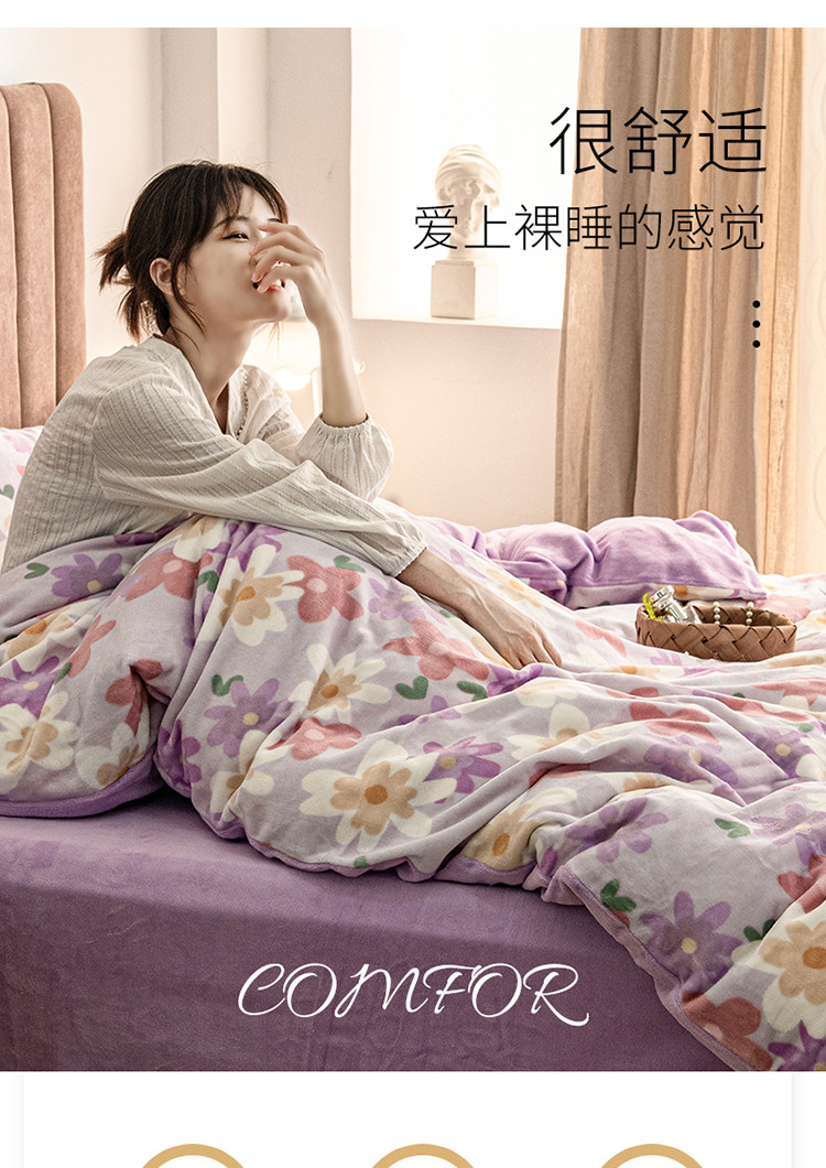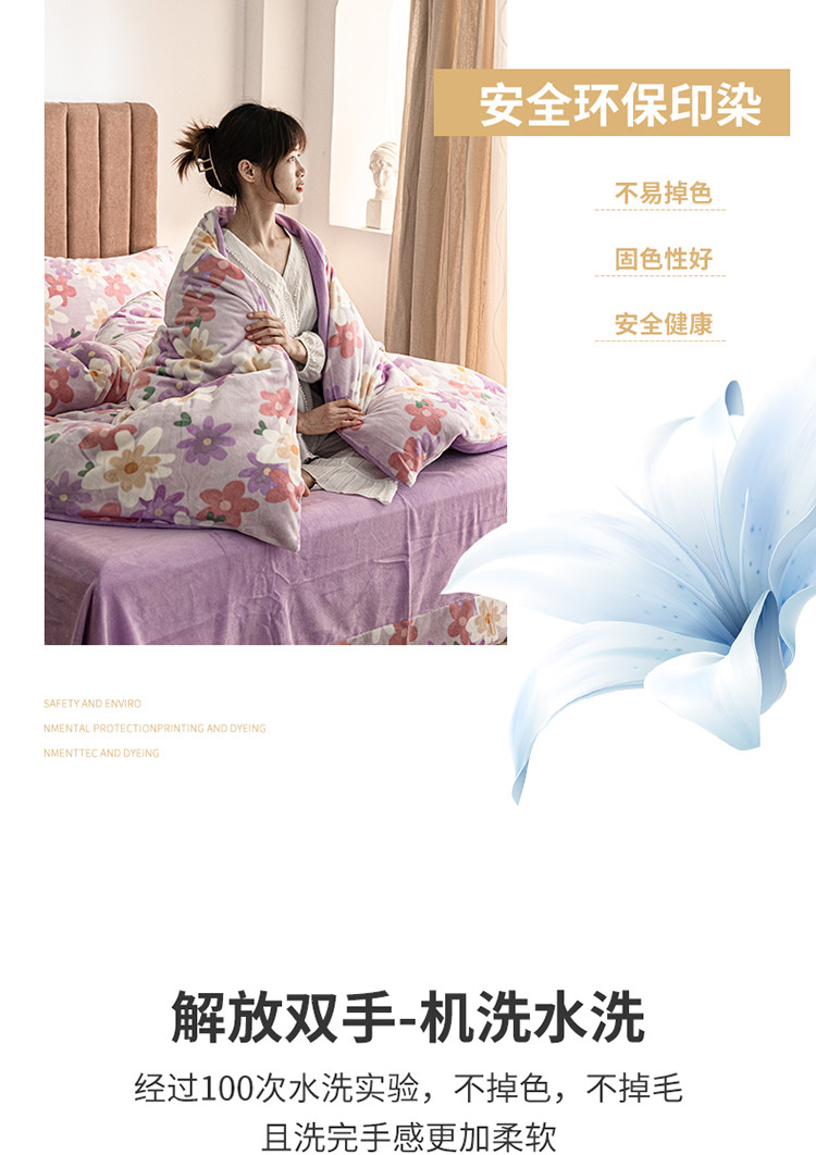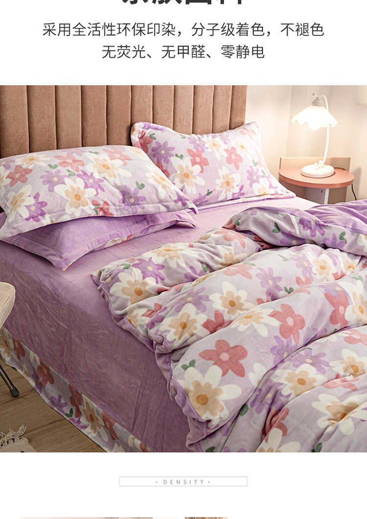 (总)佳梦家纺 2021新款婴儿绒刺绣款四件套,绿色,紫色