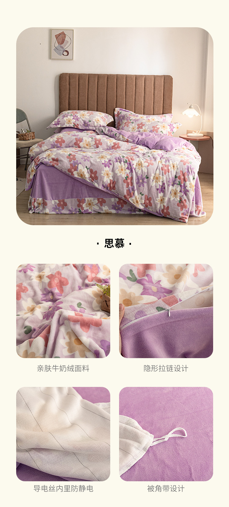 佳梦家纺 2021新款牛奶绒印花四件套 思慕
