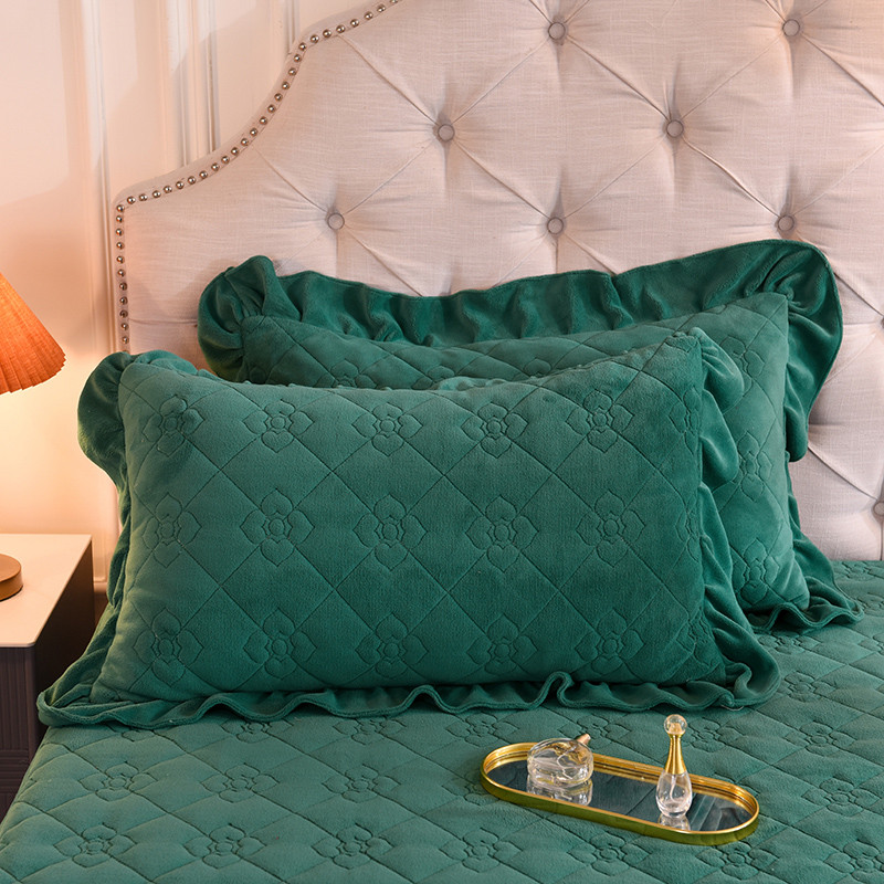 甜之梦 2025新款牛奶绒夹棉纯色枕套48*74cm 墨绿