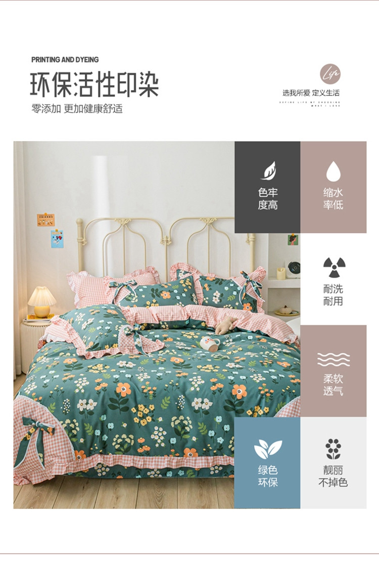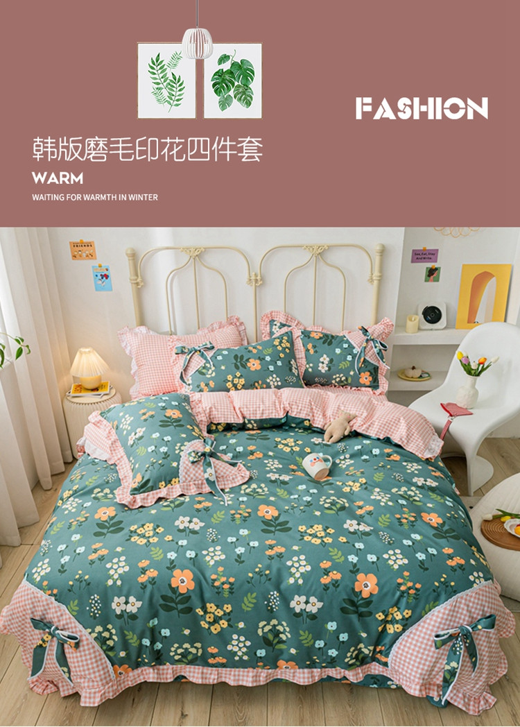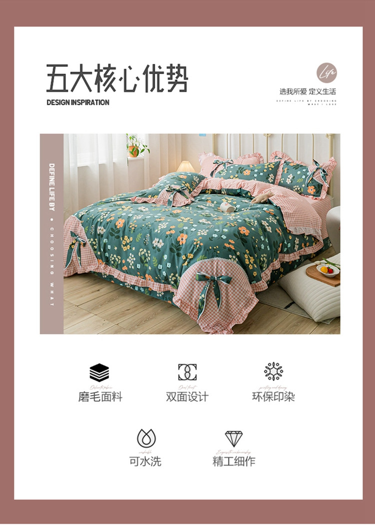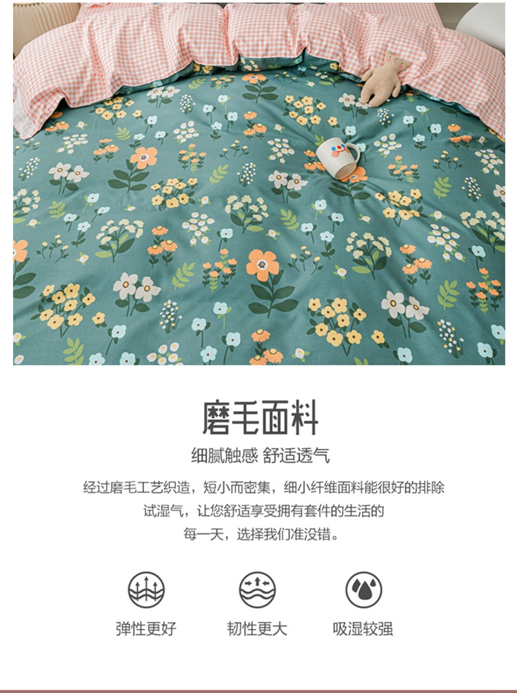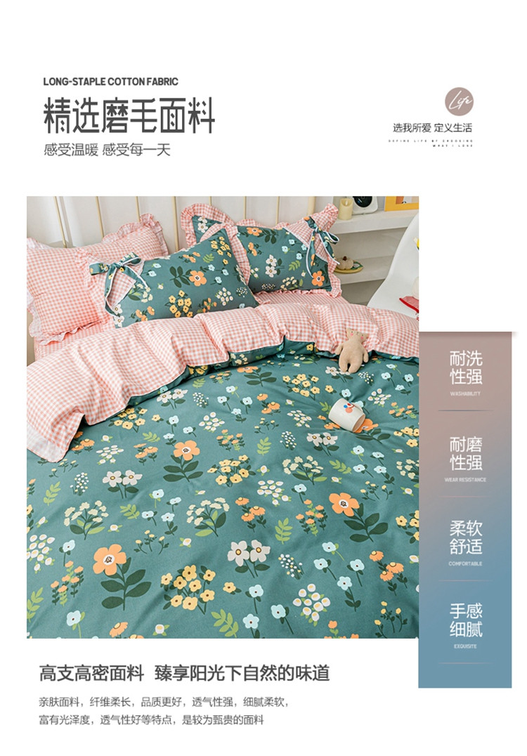 商品名称:靓生活 2021新款韩版磨毛四件套 春的乐章-森林绿