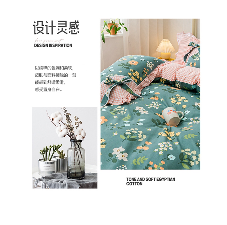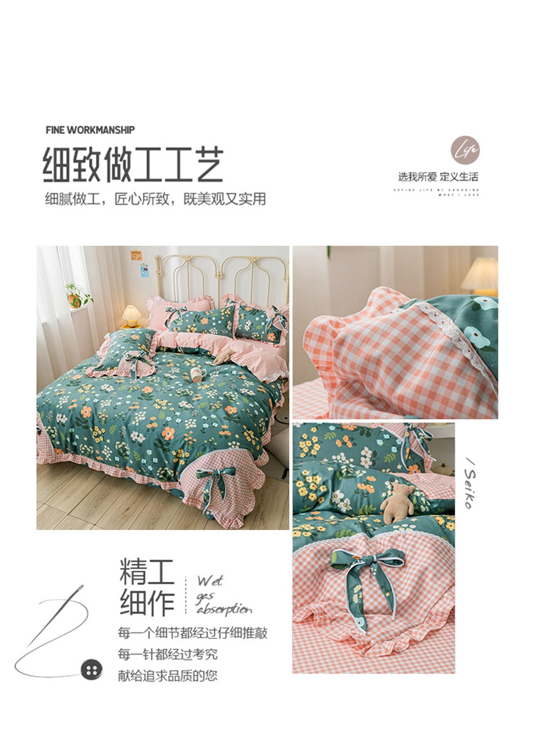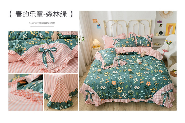 靓生活 2021新款韩版磨毛四件套 春的乐章-森林绿