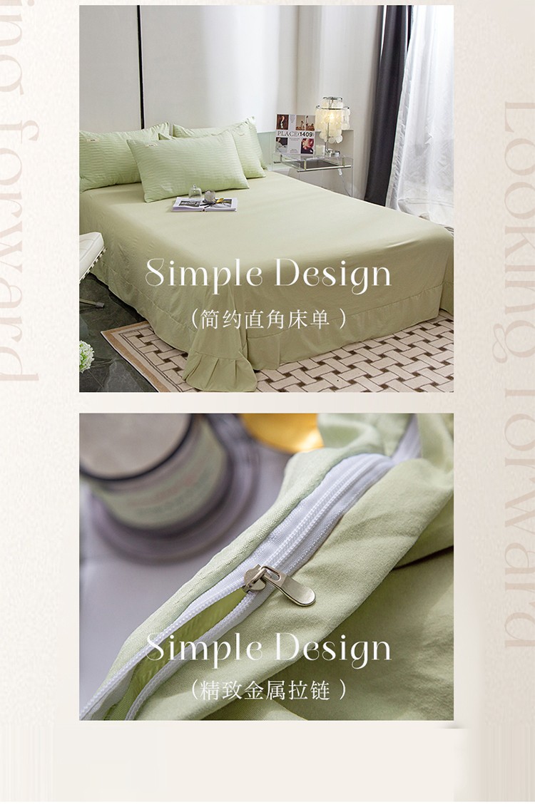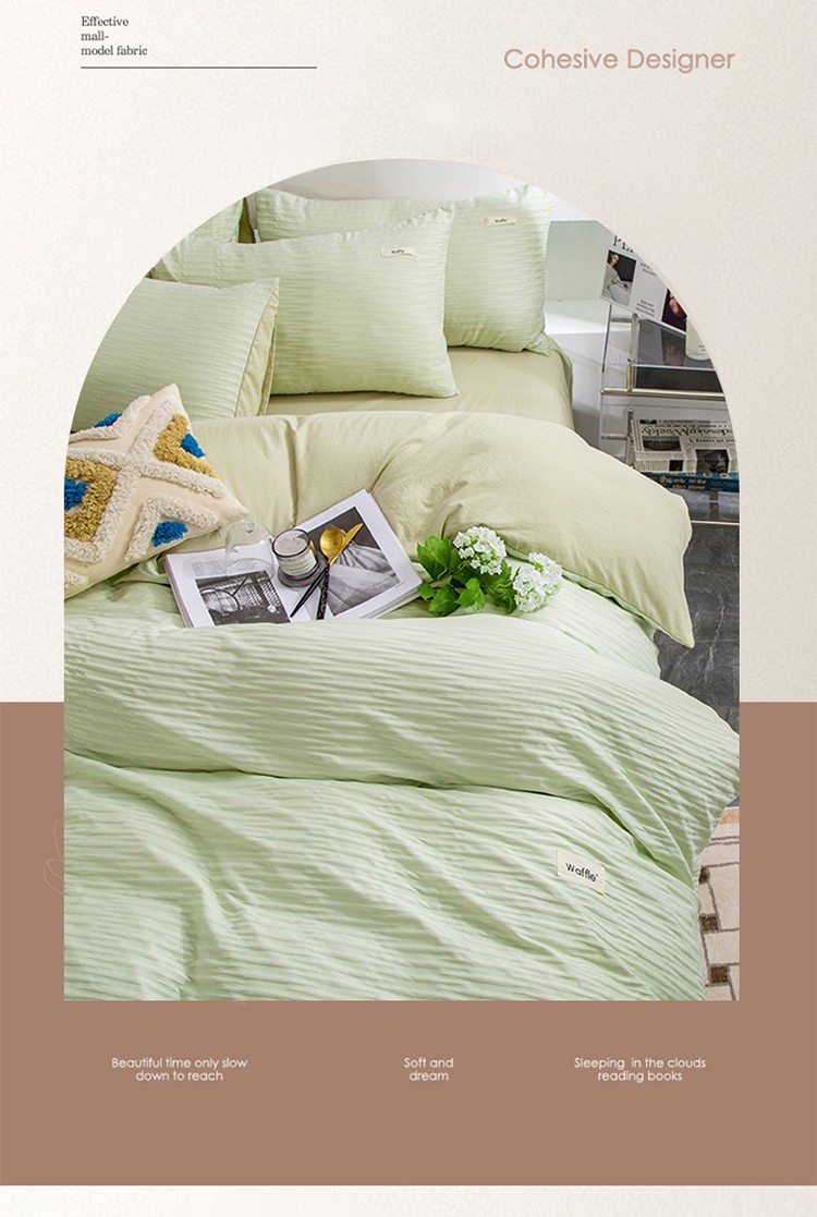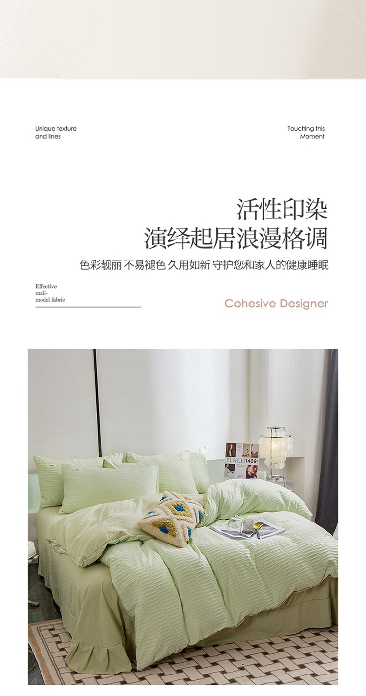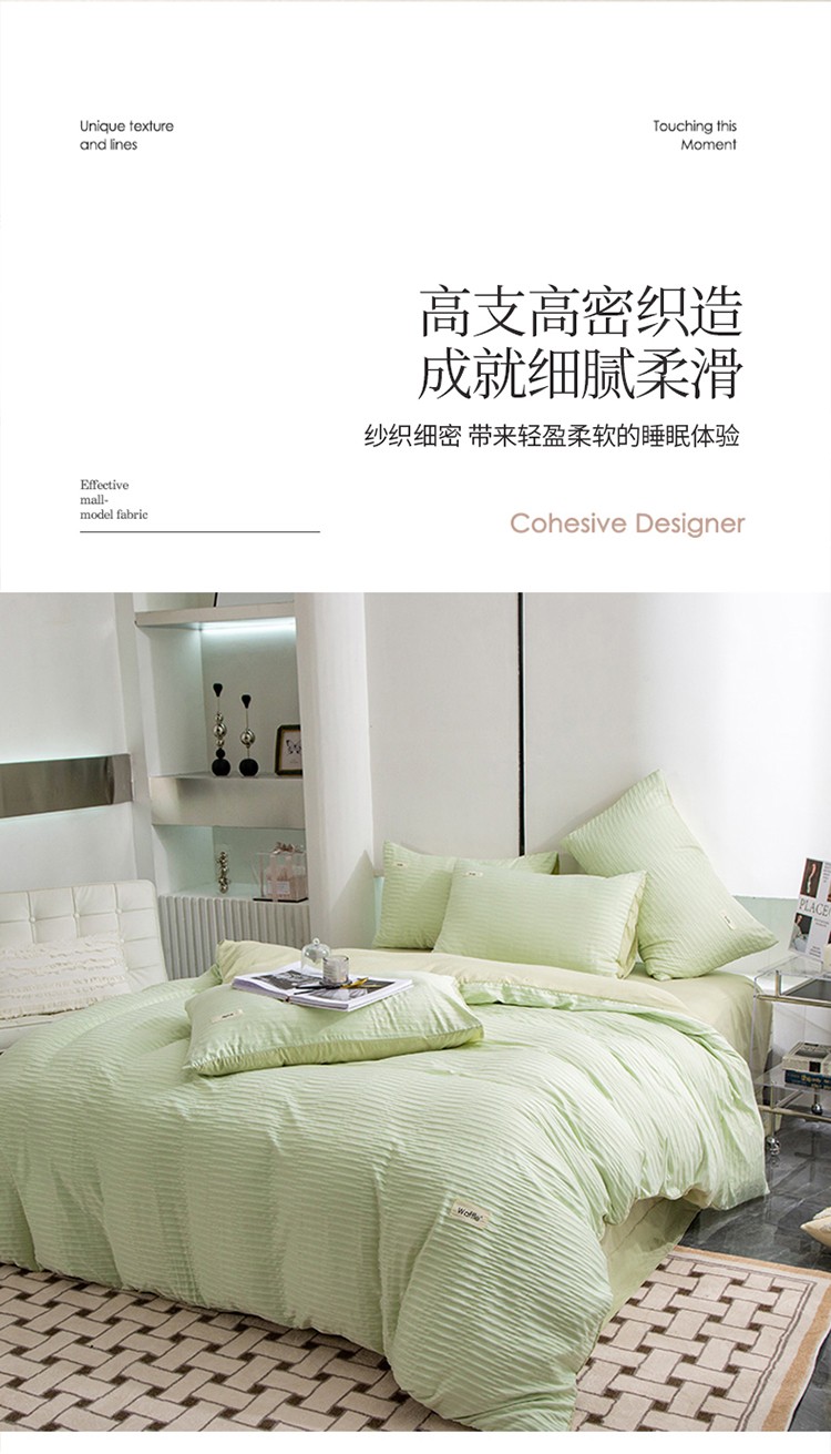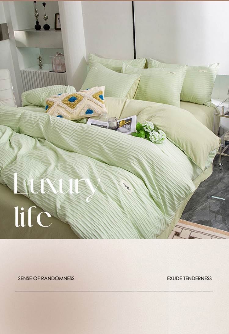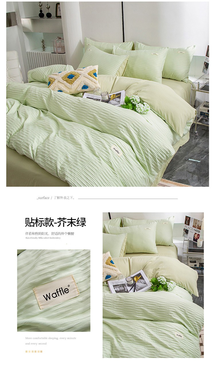 仟网汇 2023新款简约款贴标叶子泡泡纱水洗棉四件套 贴标款-芥末绿
