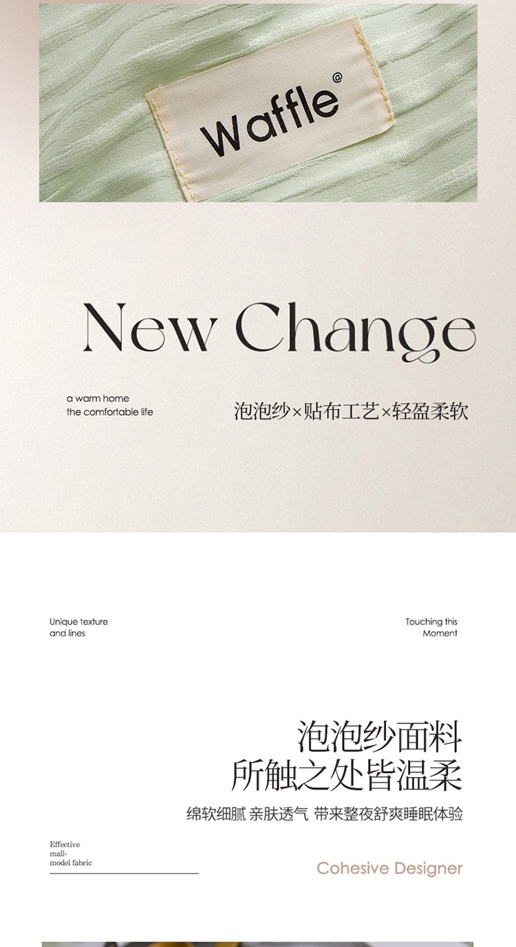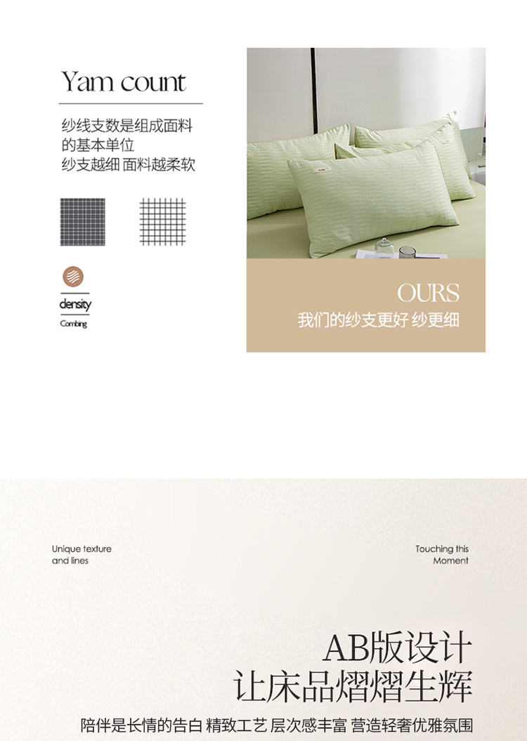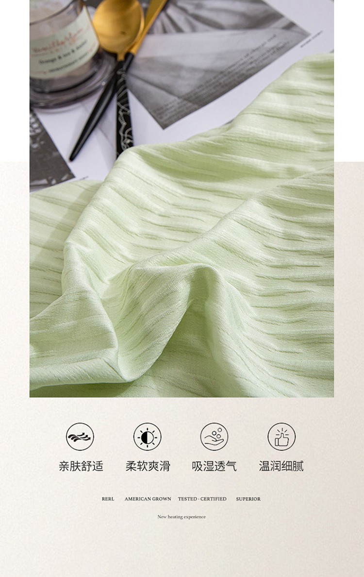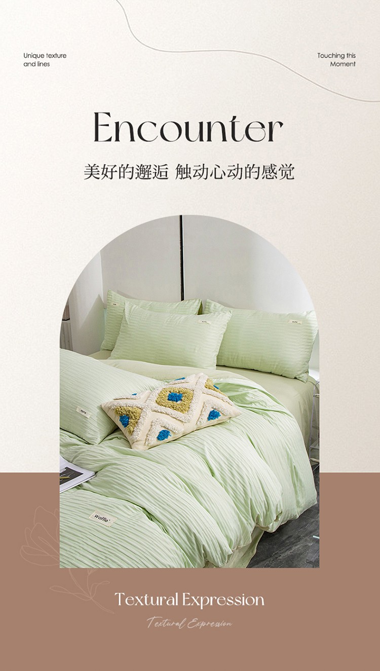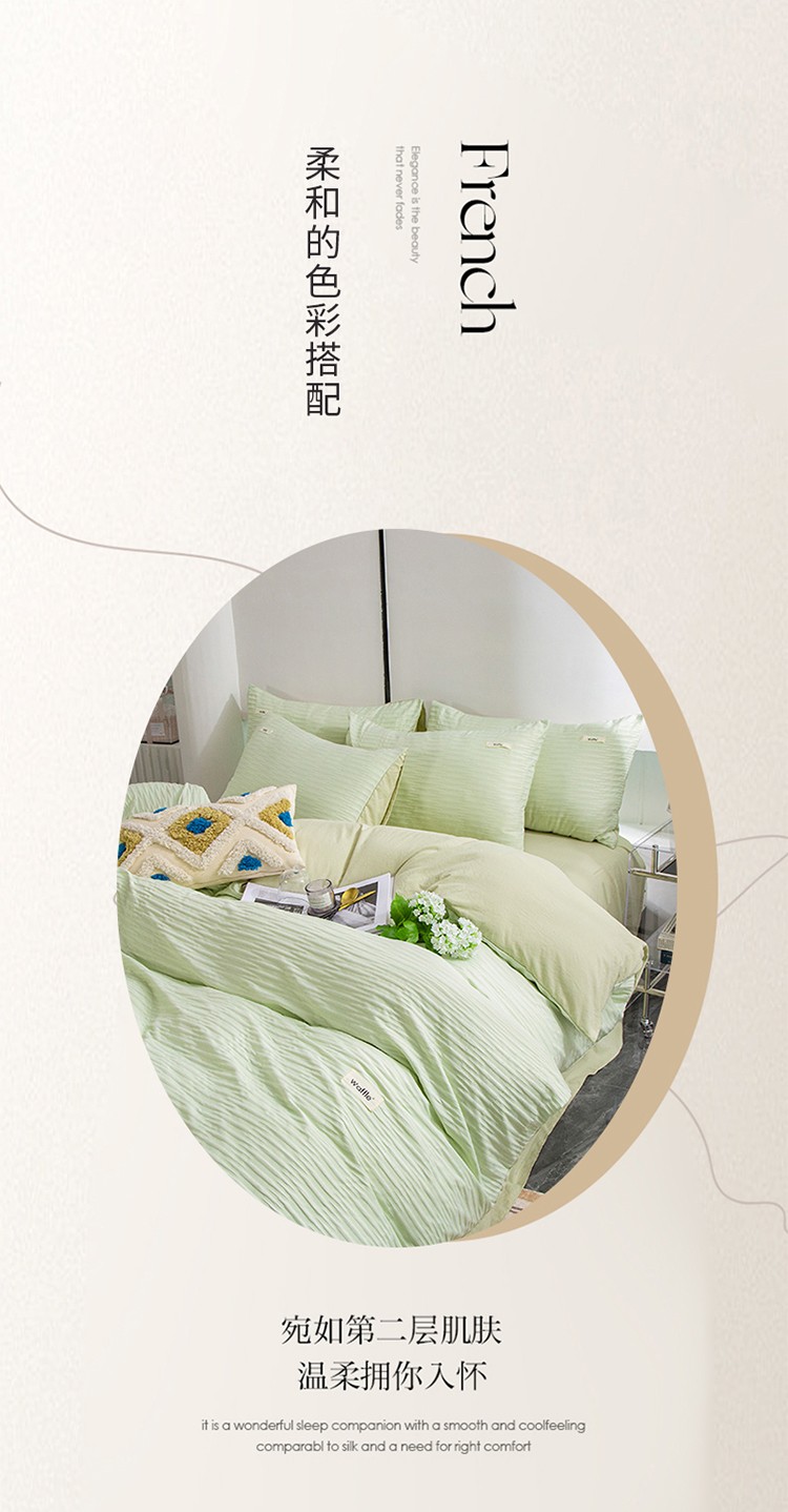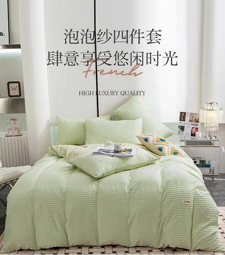 商品名称:仟网汇 2023新款简约款贴标叶子泡泡纱水洗棉四件套 贴标款-芥末绿