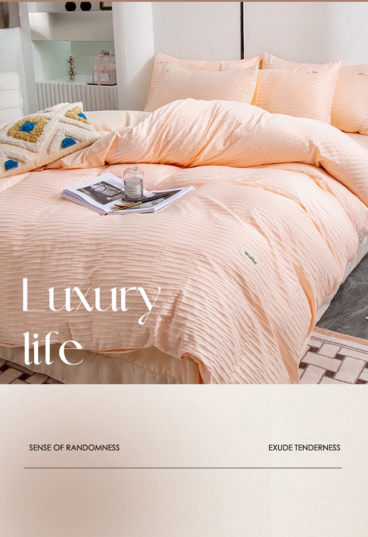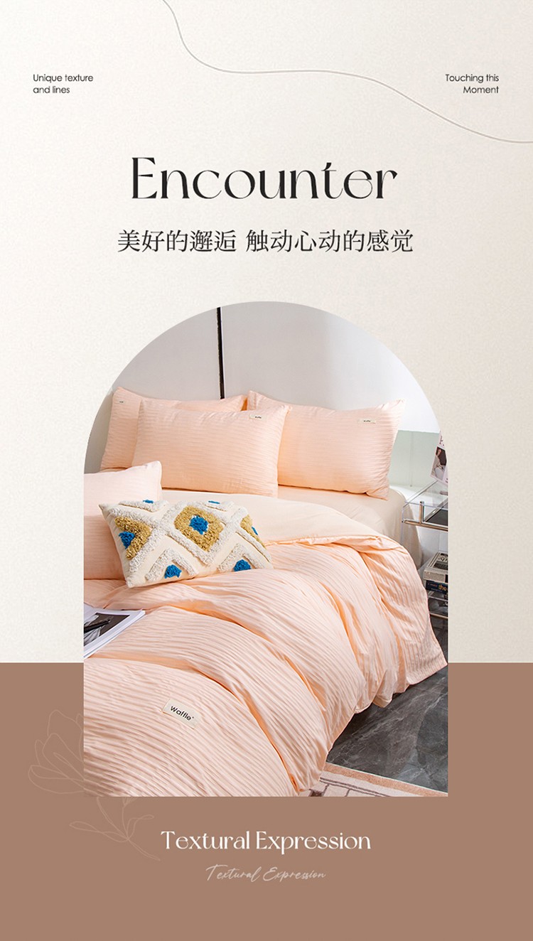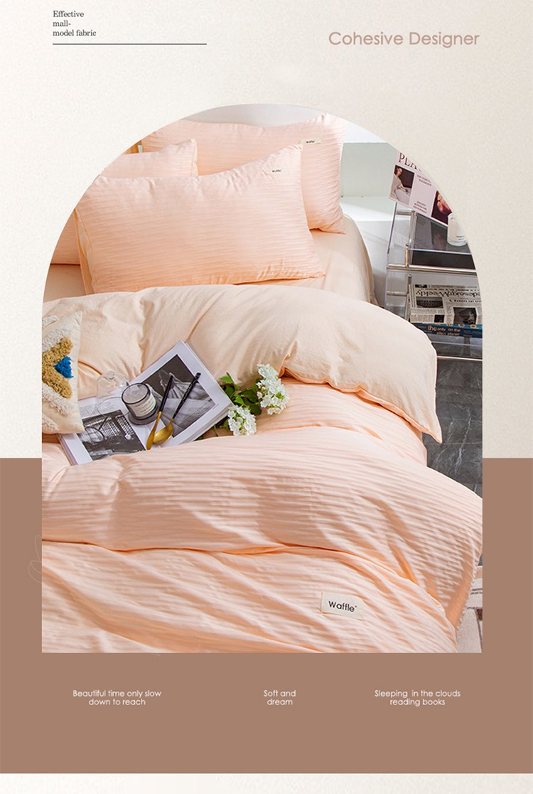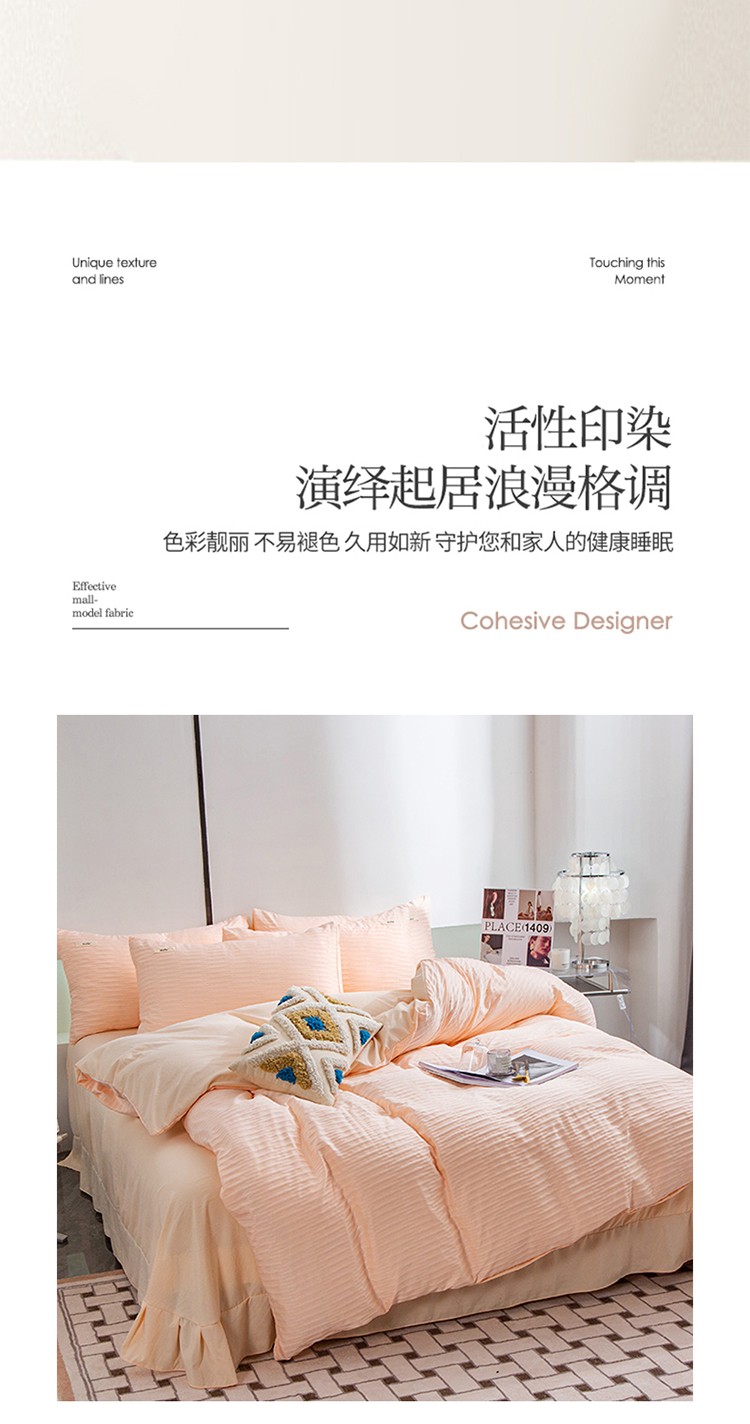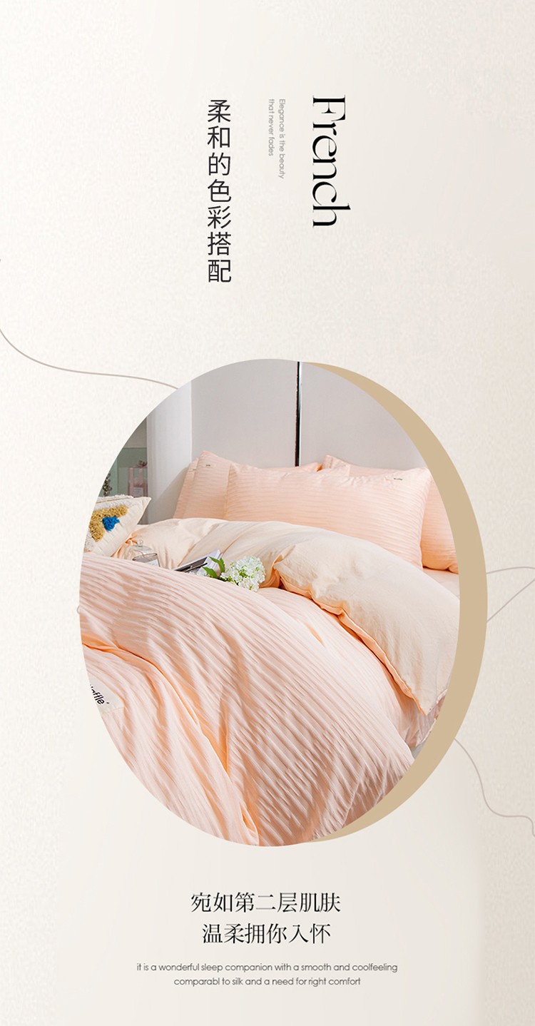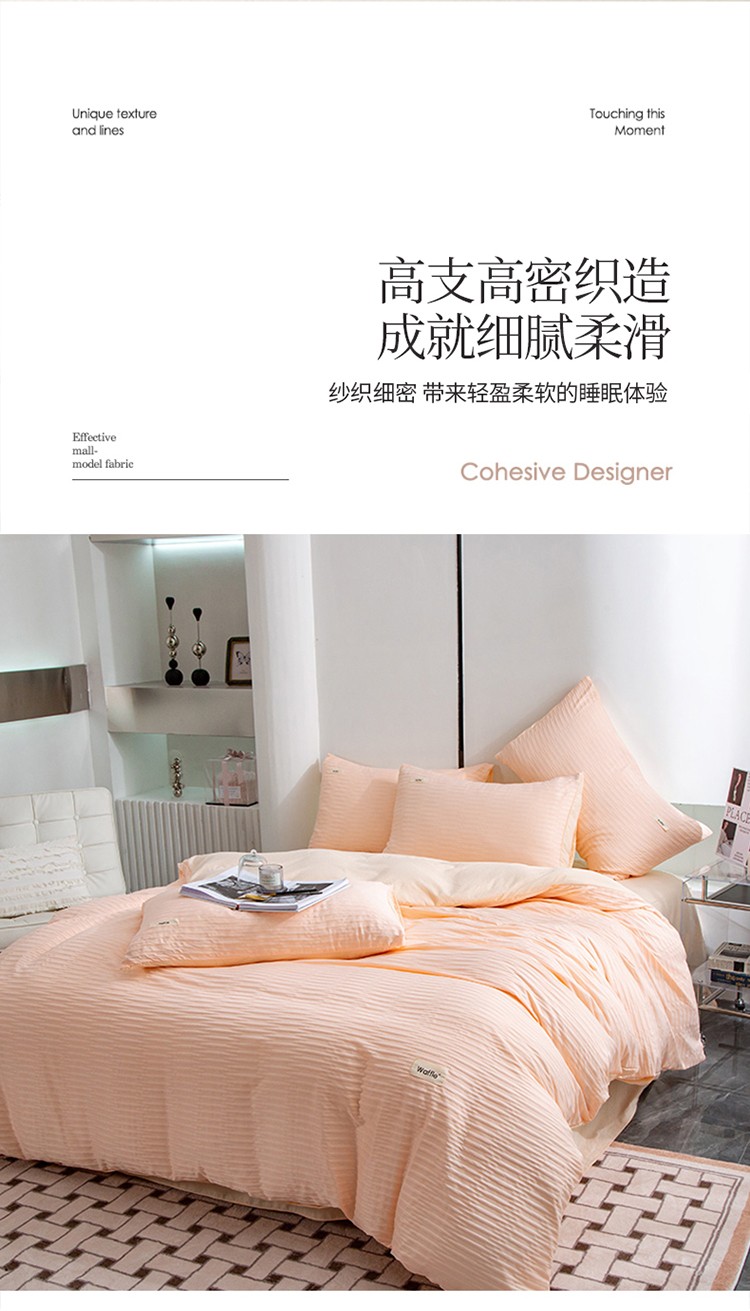 仟网汇 2023新款简约款贴标叶子泡泡纱水洗棉四件套 贴标款-玉色