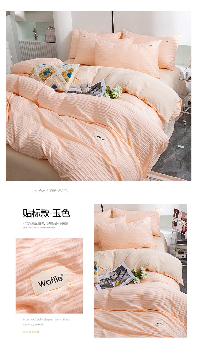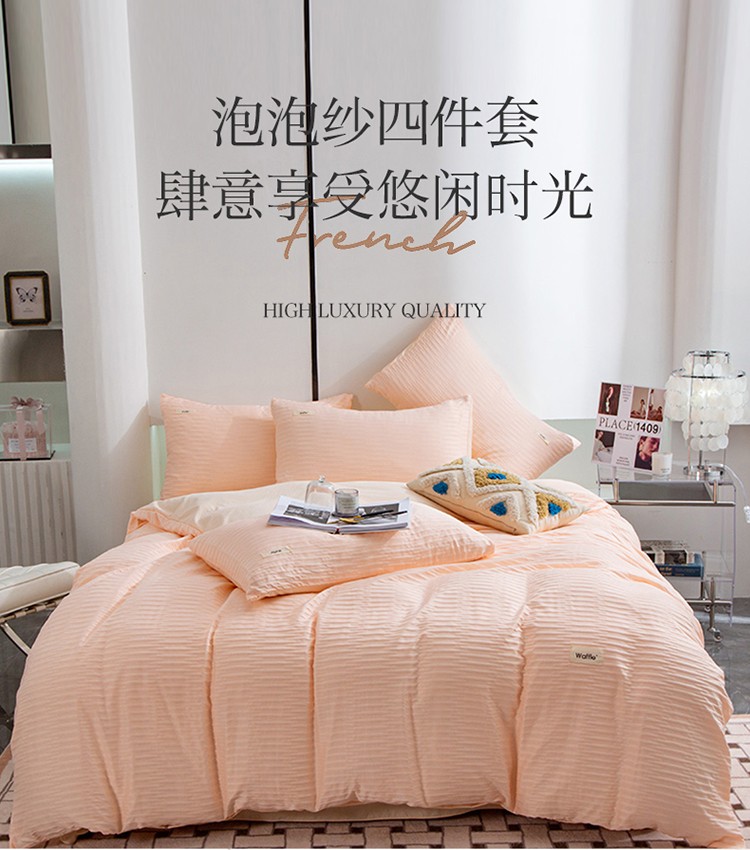 商品名称:仟网汇 2023新款简约款贴标叶子泡泡纱水洗棉四件套 贴标款-玉色