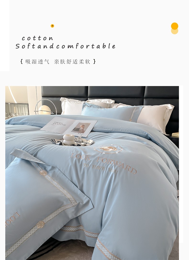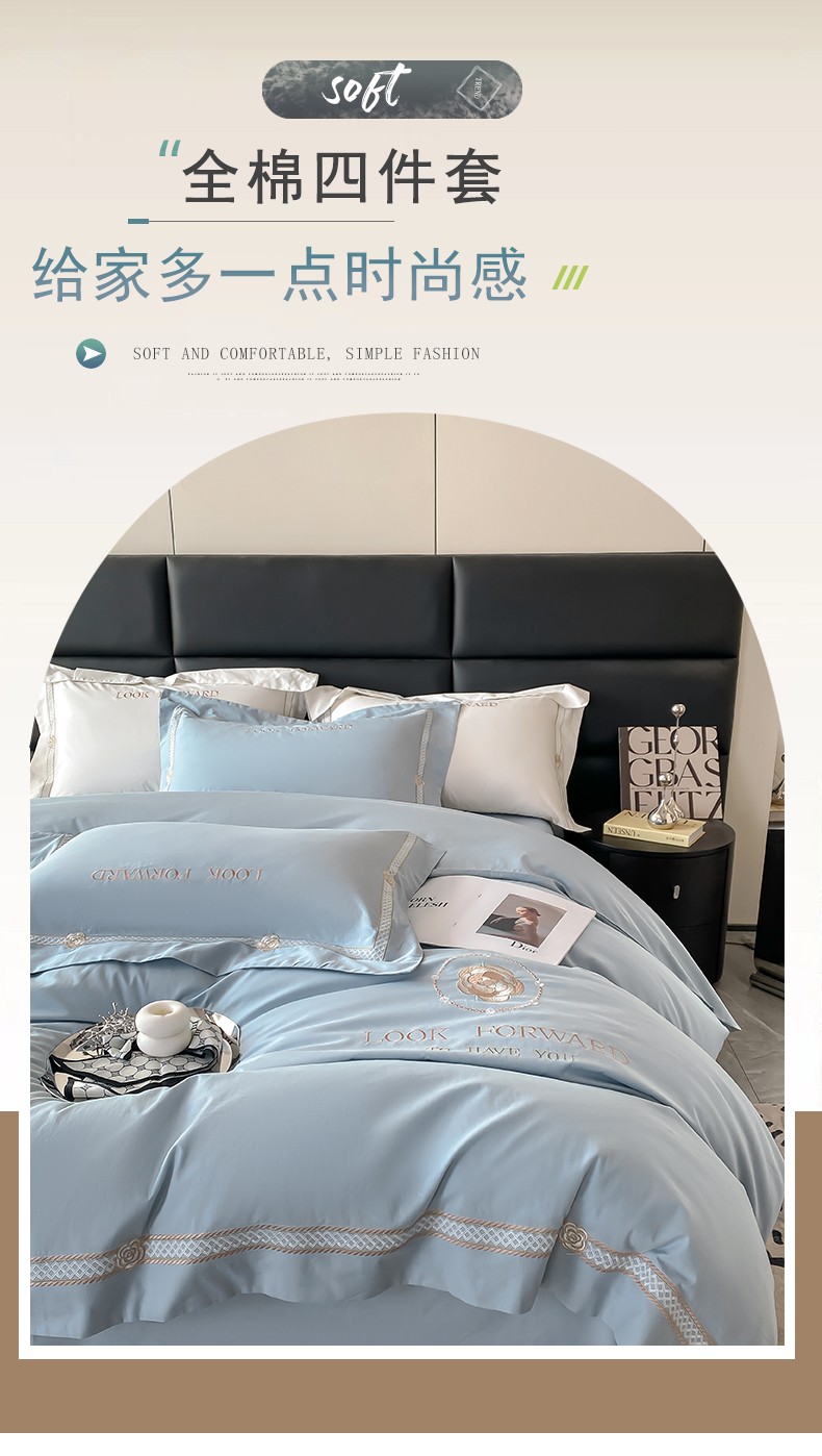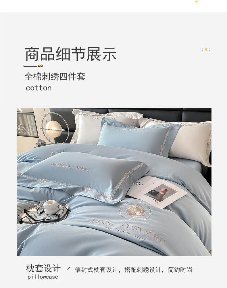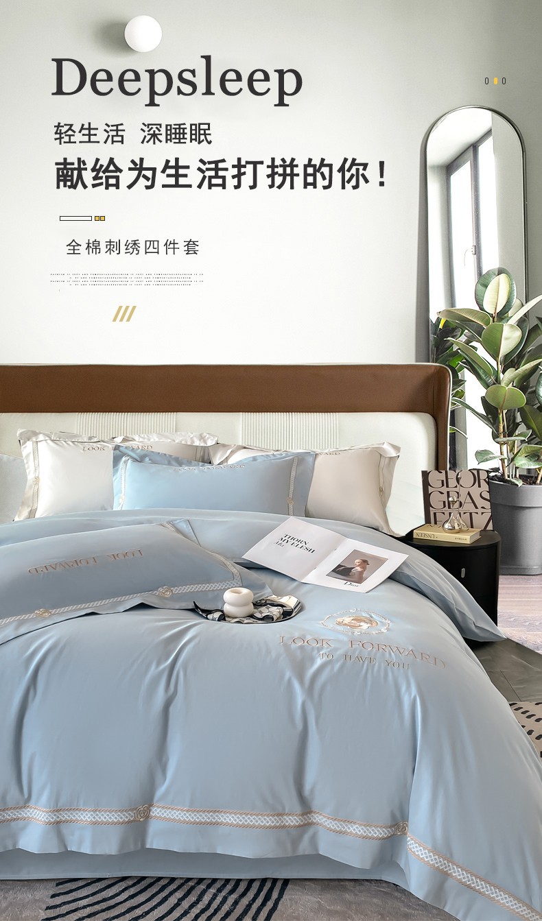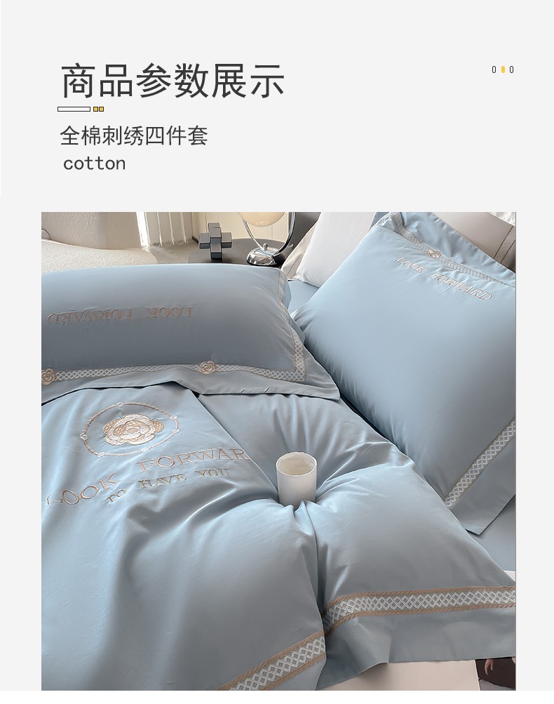 商品名称:安妮 2023新款全棉刺绣四件套邂逅系列 梵星蓝