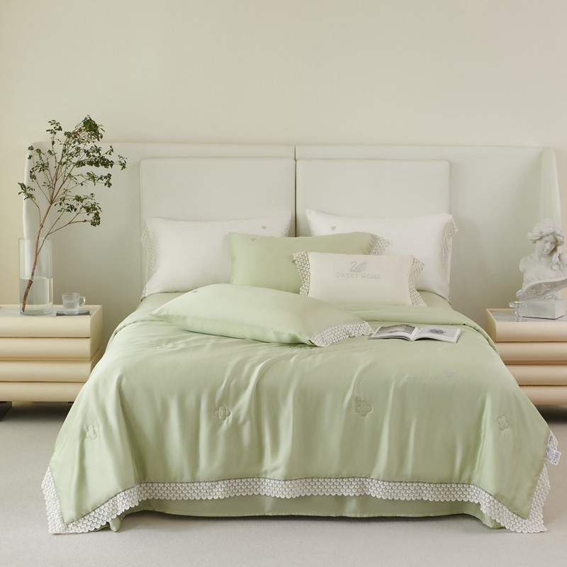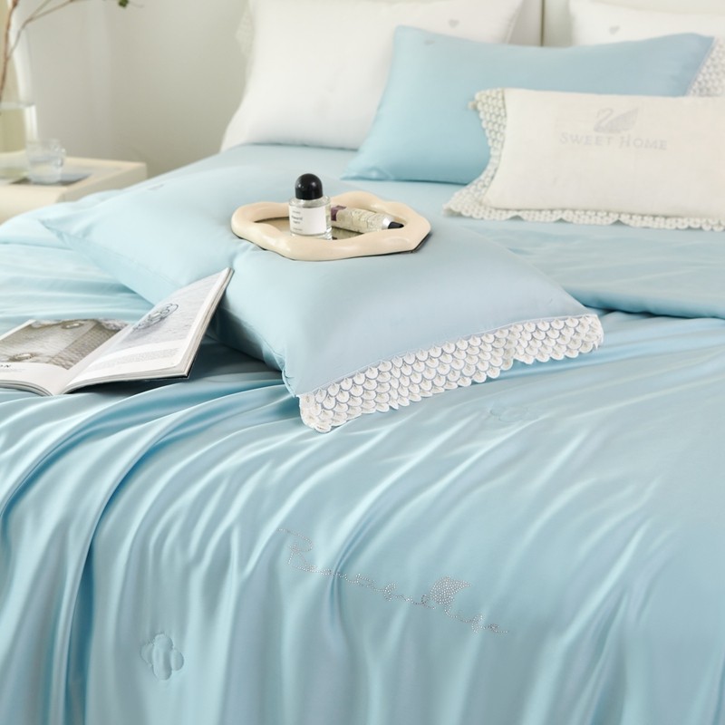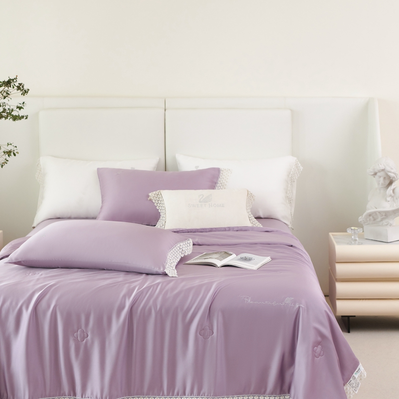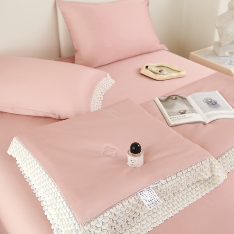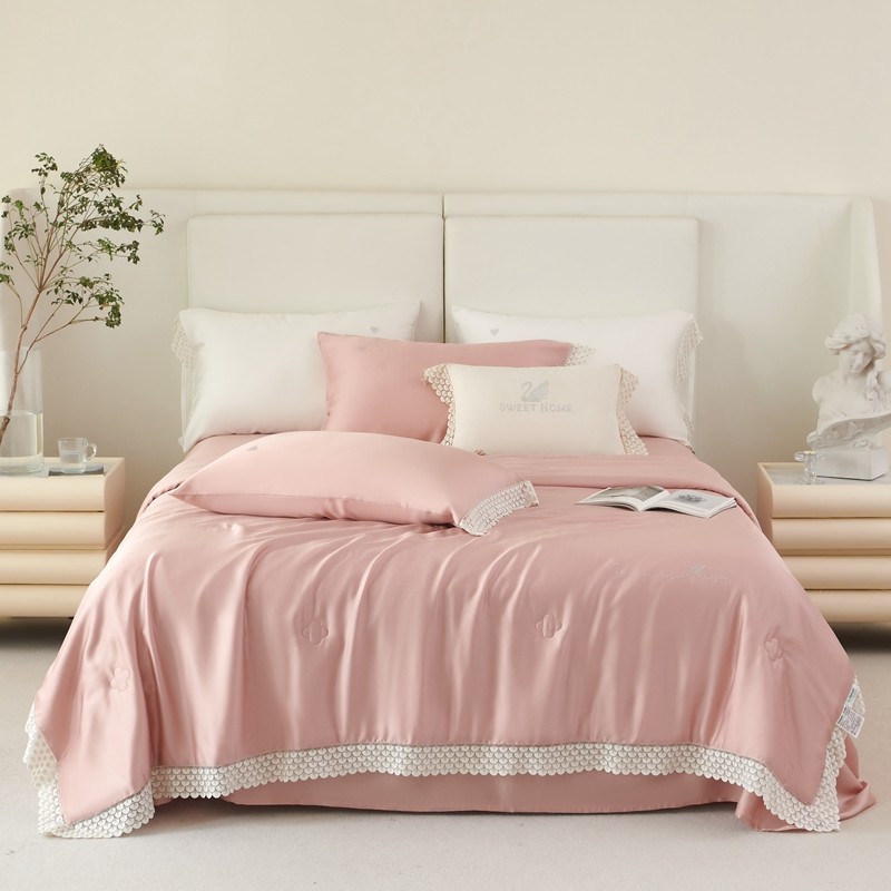 (总)榻尚家居 2025新款天丝床盖夏被夏凉被空调被四件套-佩利兹,佩利兹床盖夏被四件套-粉色,佩利兹床盖夏被四件套-香槟