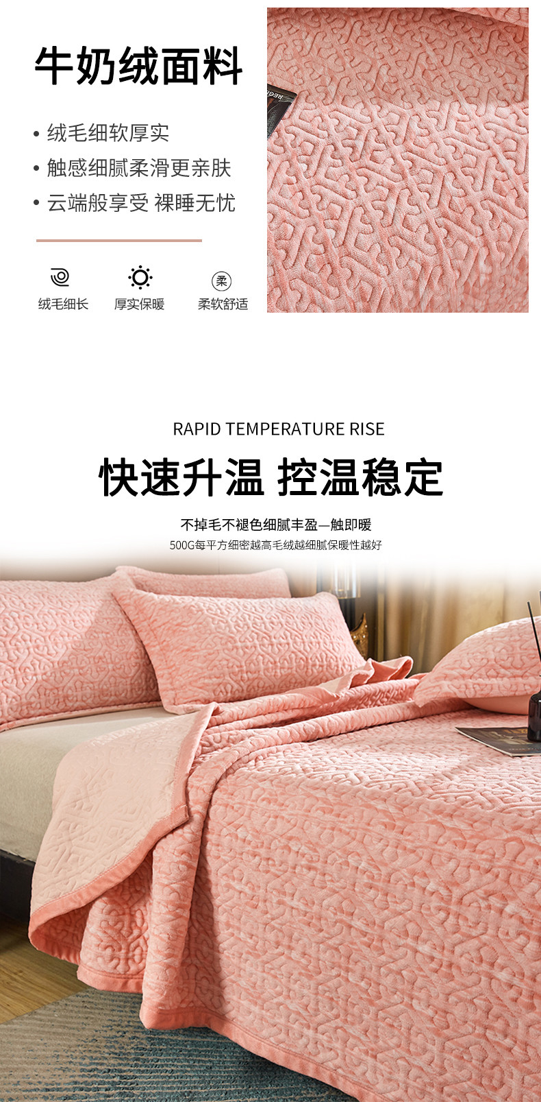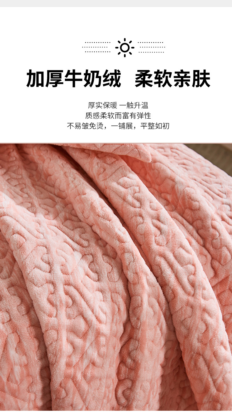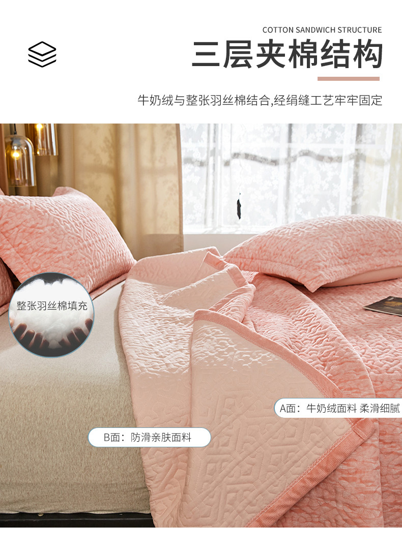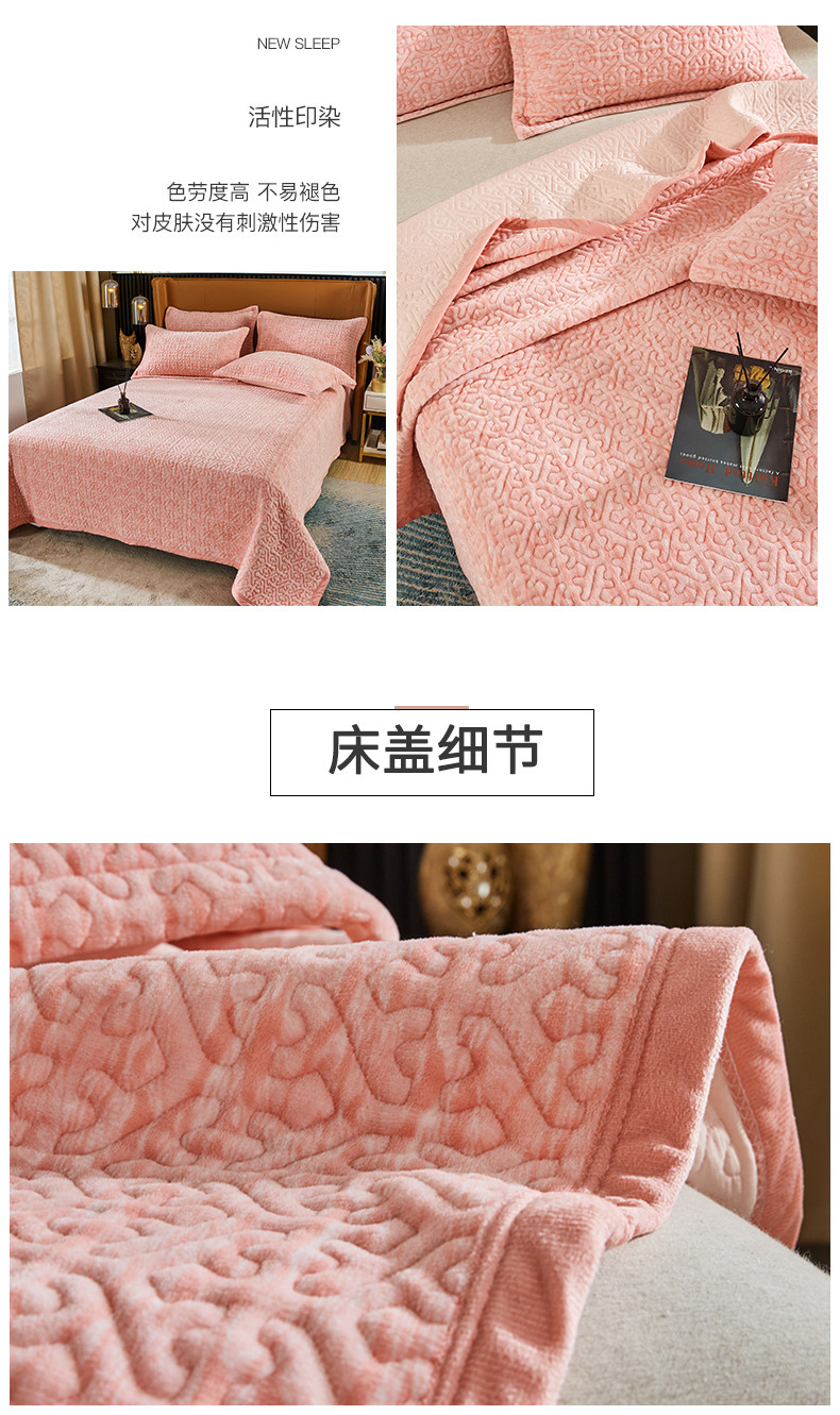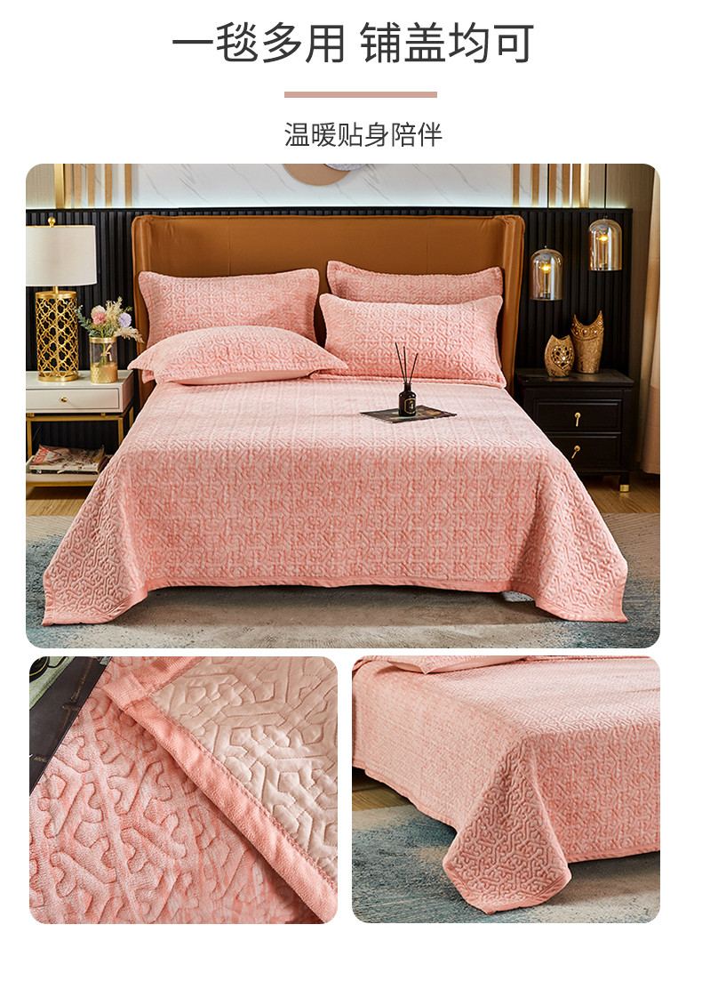 佳梦家纺 2023新款冬季色织绗缝床盖榻榻米垫子牛奶绒毛毯 粉玉