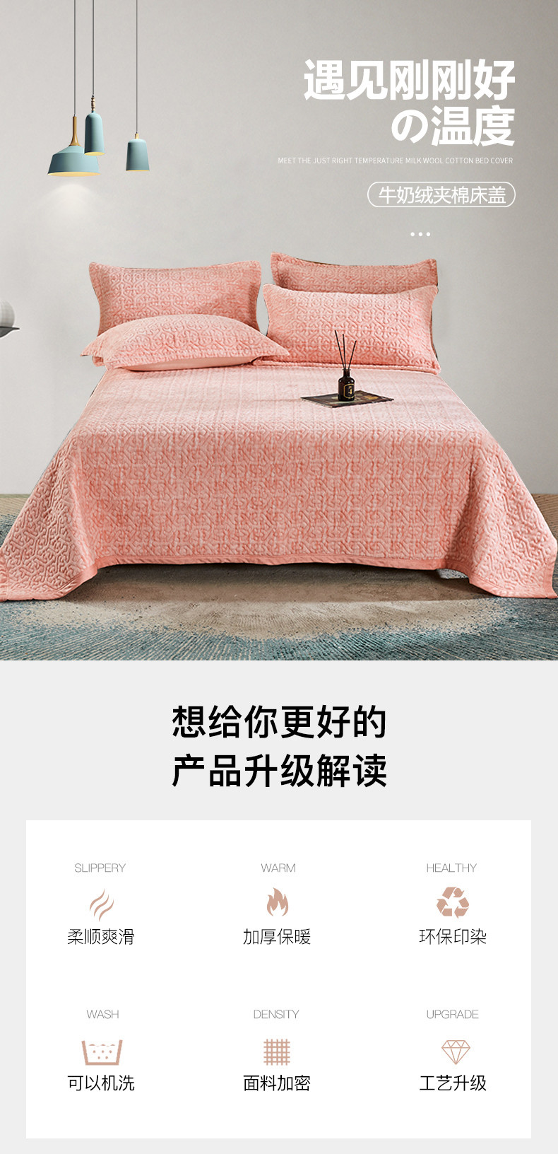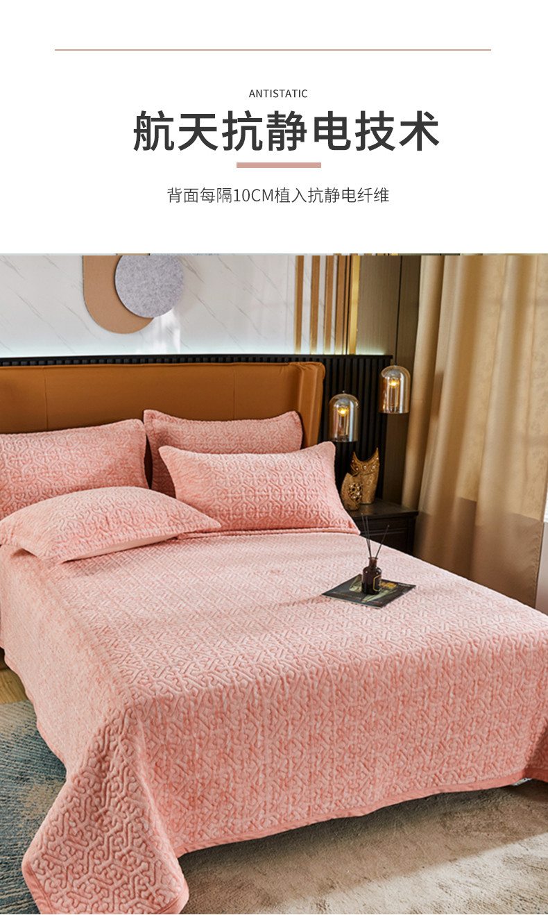 • 91家纺网 家纺一手货源 找家纺 佳梦家纺 2023新款冬季色织绗缝床盖榻榻米垫子牛奶绒毛毯 粉玉