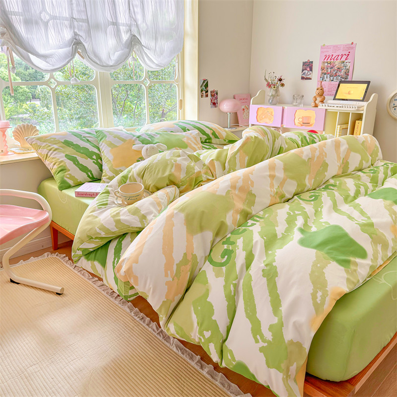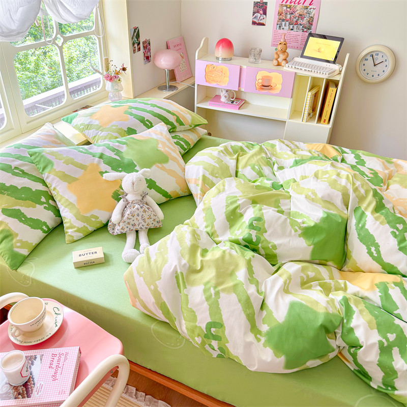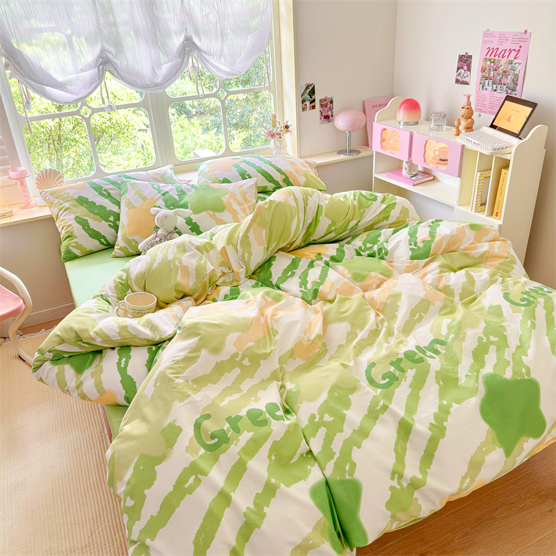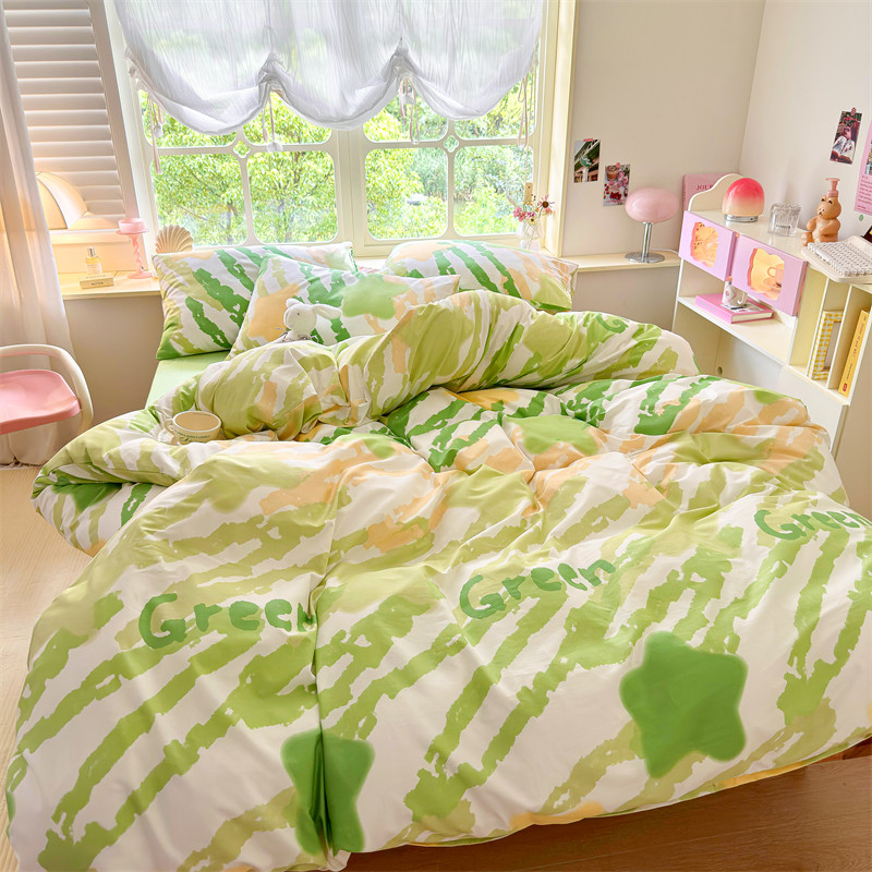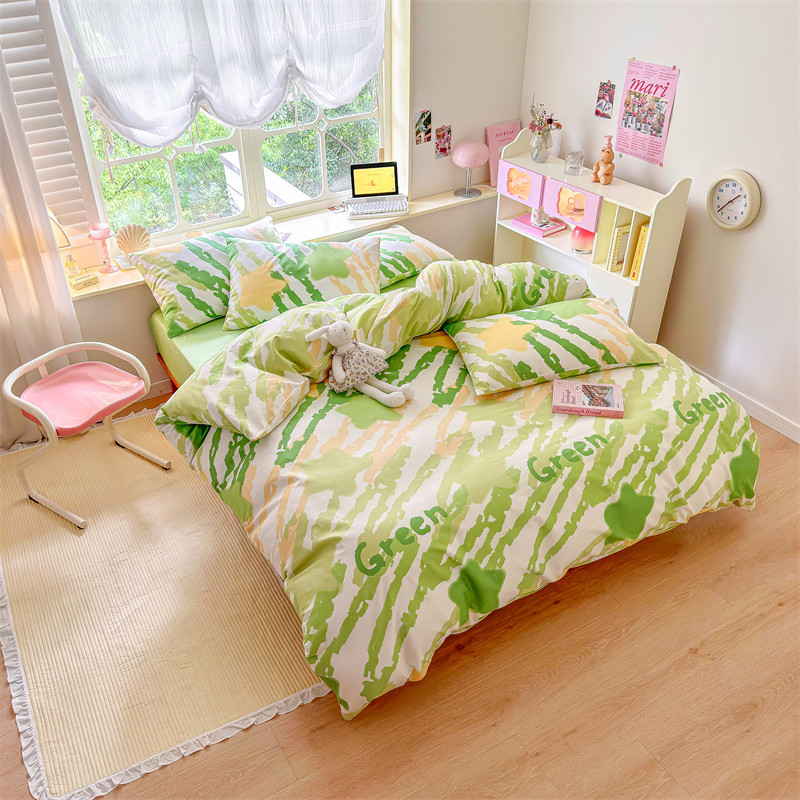 商品名称:花伞 2023直播新款40支高密全棉纯棉小清新单品被套-绿色星星