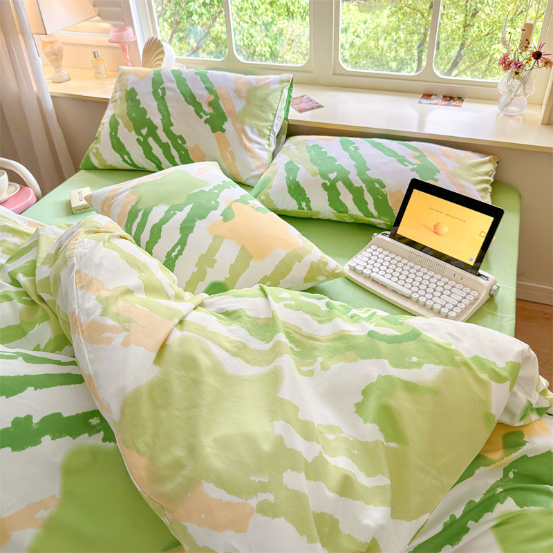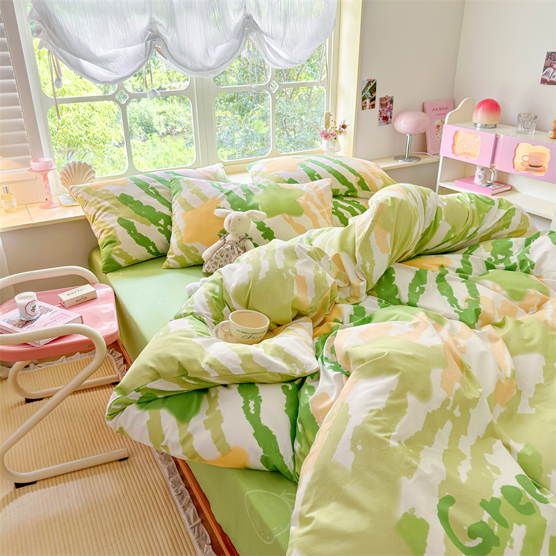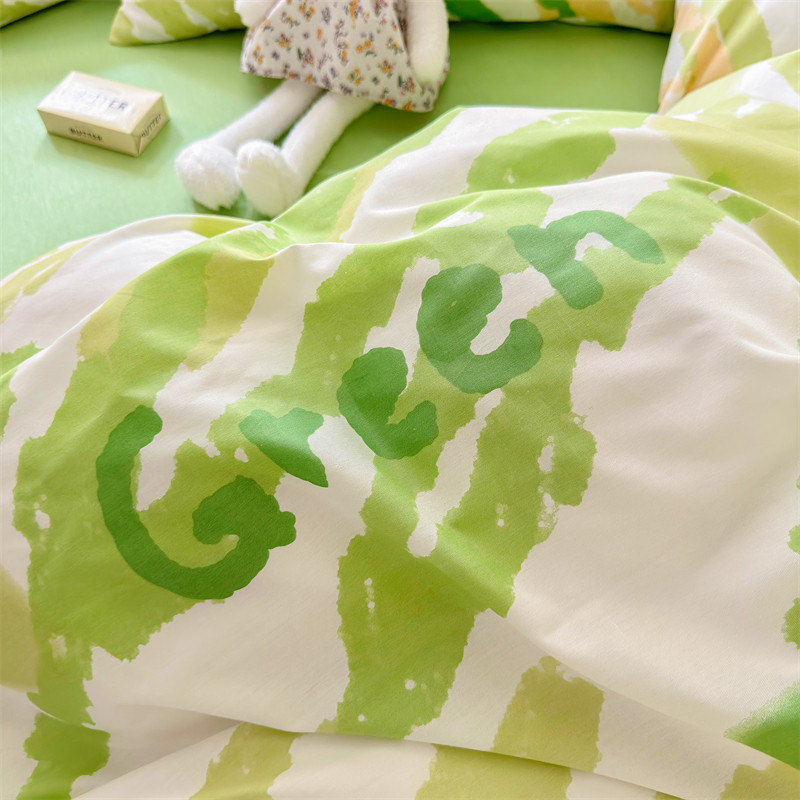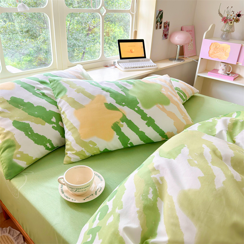 花伞 2023直播新款40支高密全棉纯棉小清新单品被套-绿色星星